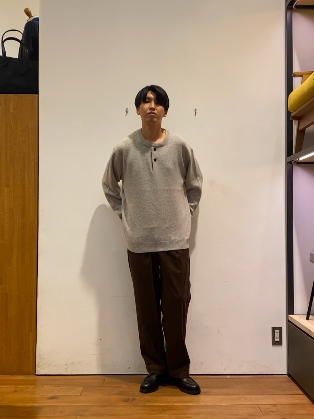 今回は、ハミルトンのヘンリーネックニットとコーデュロイパンツを合わせてみました!