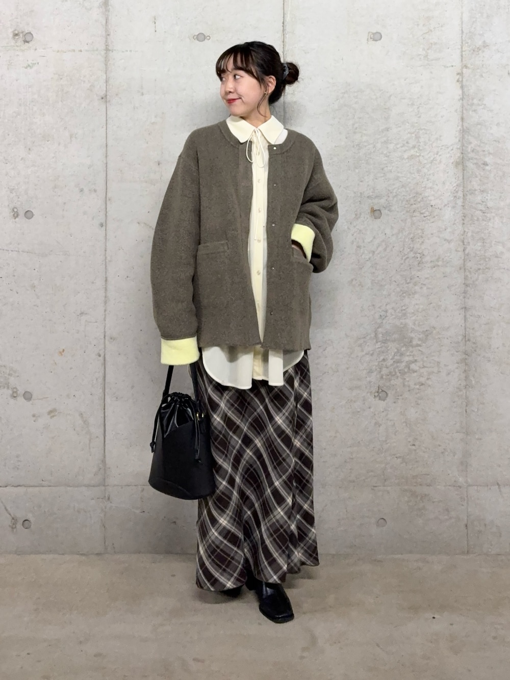 イエローベージュのボウタイブラウスは定番スタイルに飽きた方にとってもおすすめ🥹💛ベーシックカラーに馴染みやすいので着回し力もばつぐんです🙆♀️✨
