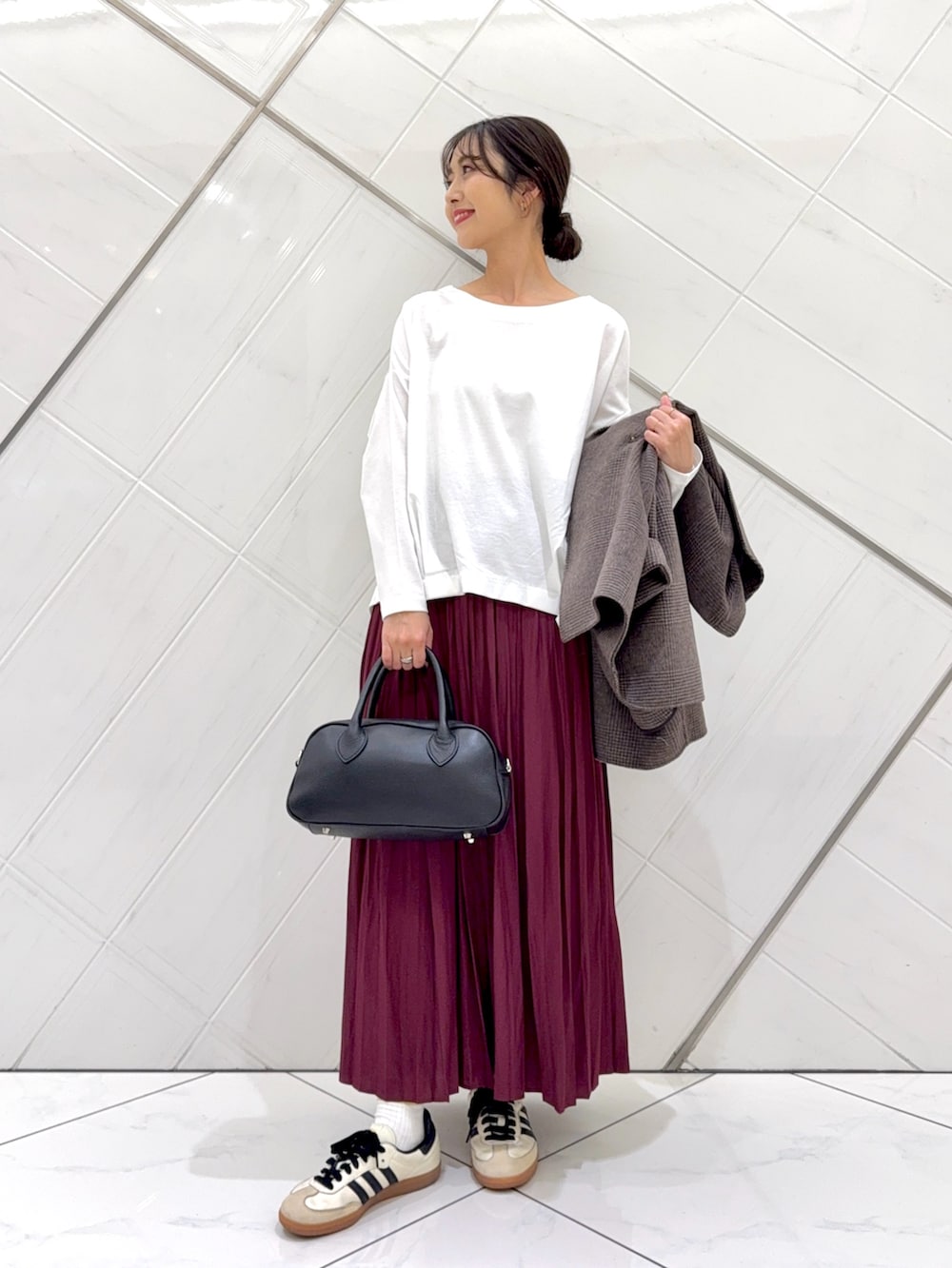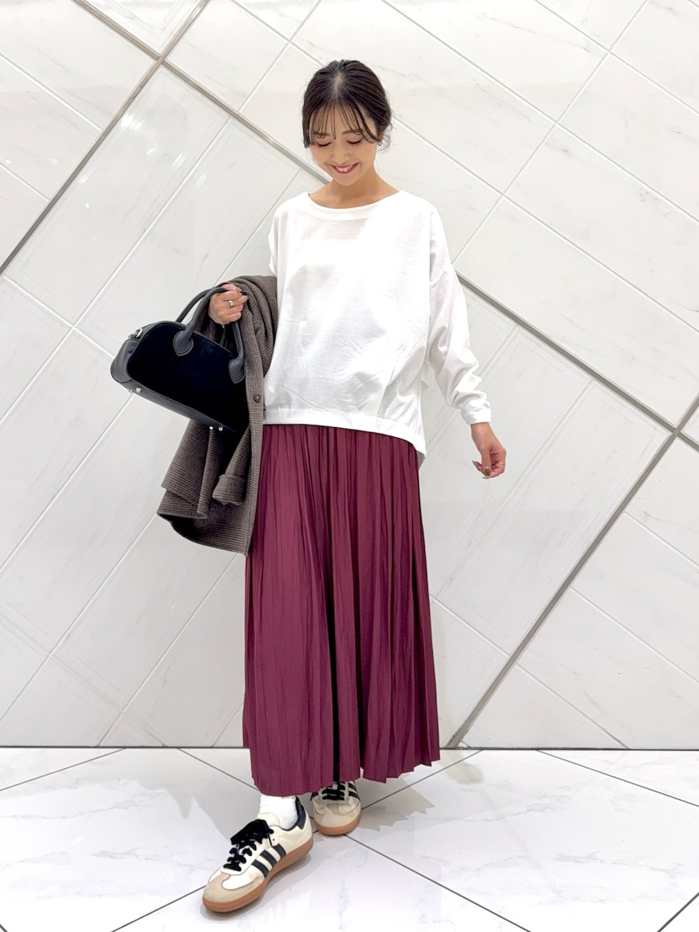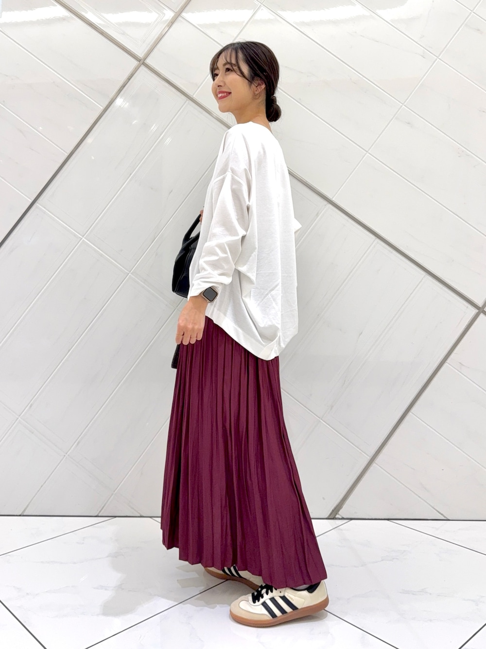 全体的にゆったりとした作りで少し襟を抜いて着るとこなれ感が出るのでおすすめです。
