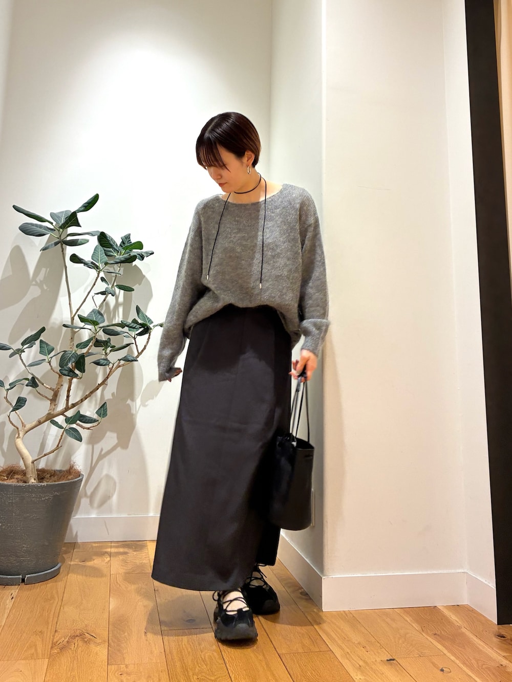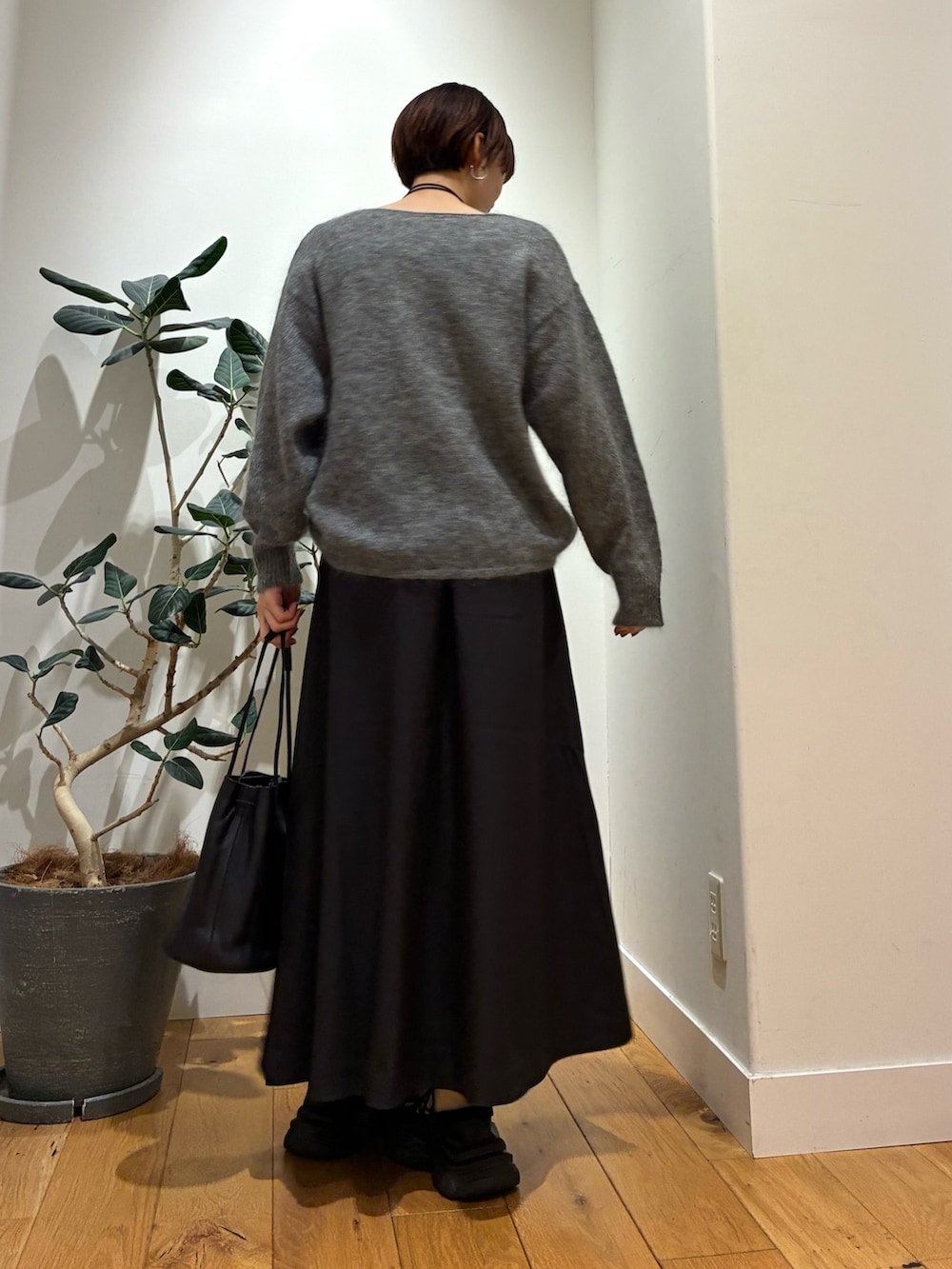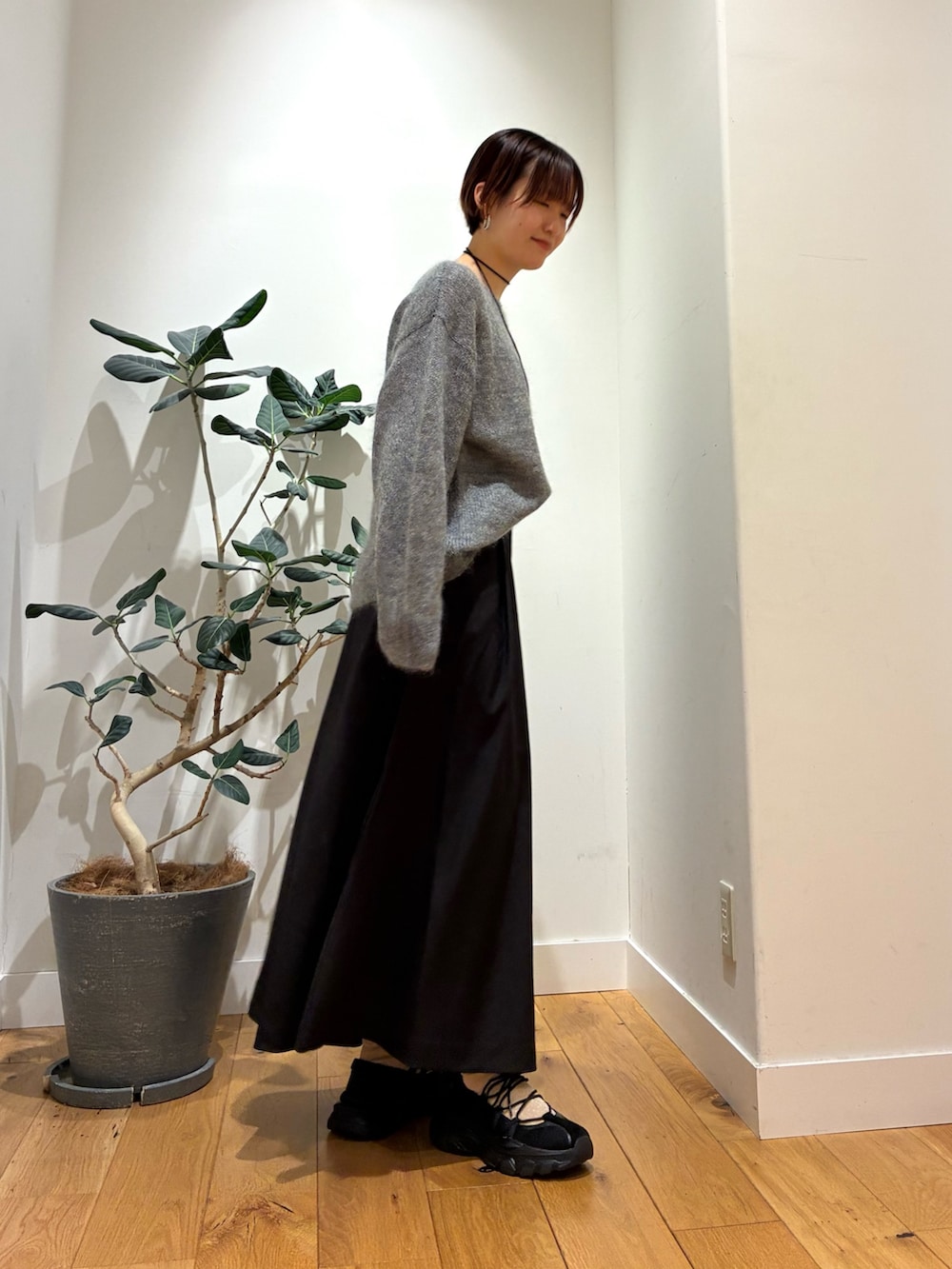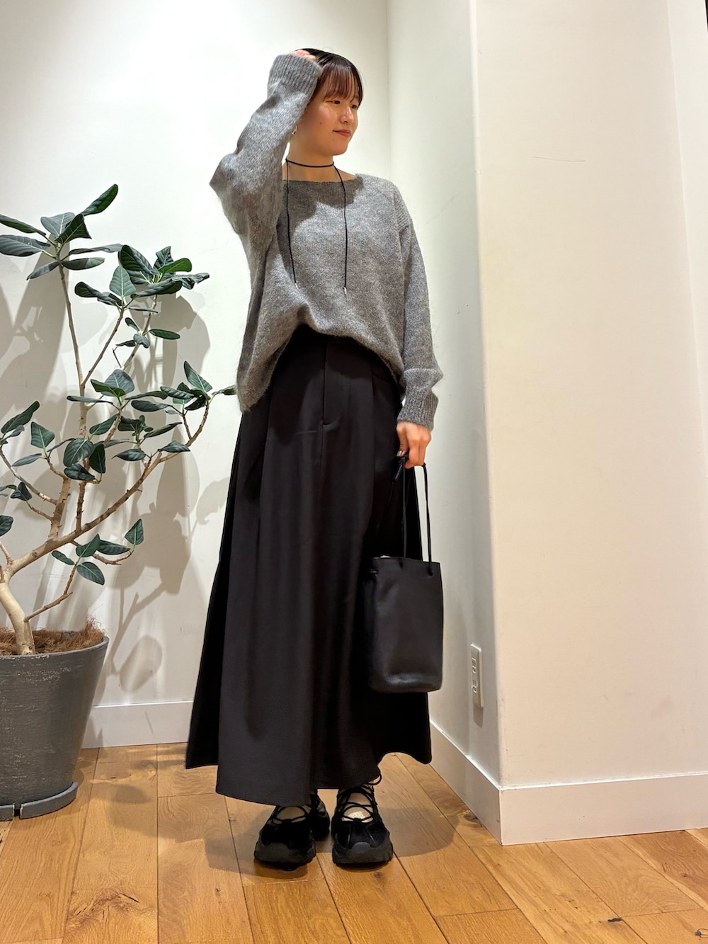 バックゴムのスカートなので、ストレスフリーで、形も綺麗に見えて、ニットを前だINしちゃえば、スタイル良く見えちゃうかも!!