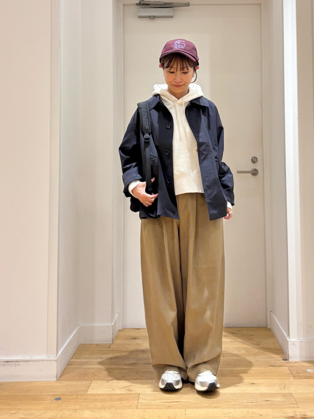 ゆったりとしたサイズ感なので、中に着込んでも楽に羽織っていただけて、長い時期にお使いいただけます◎