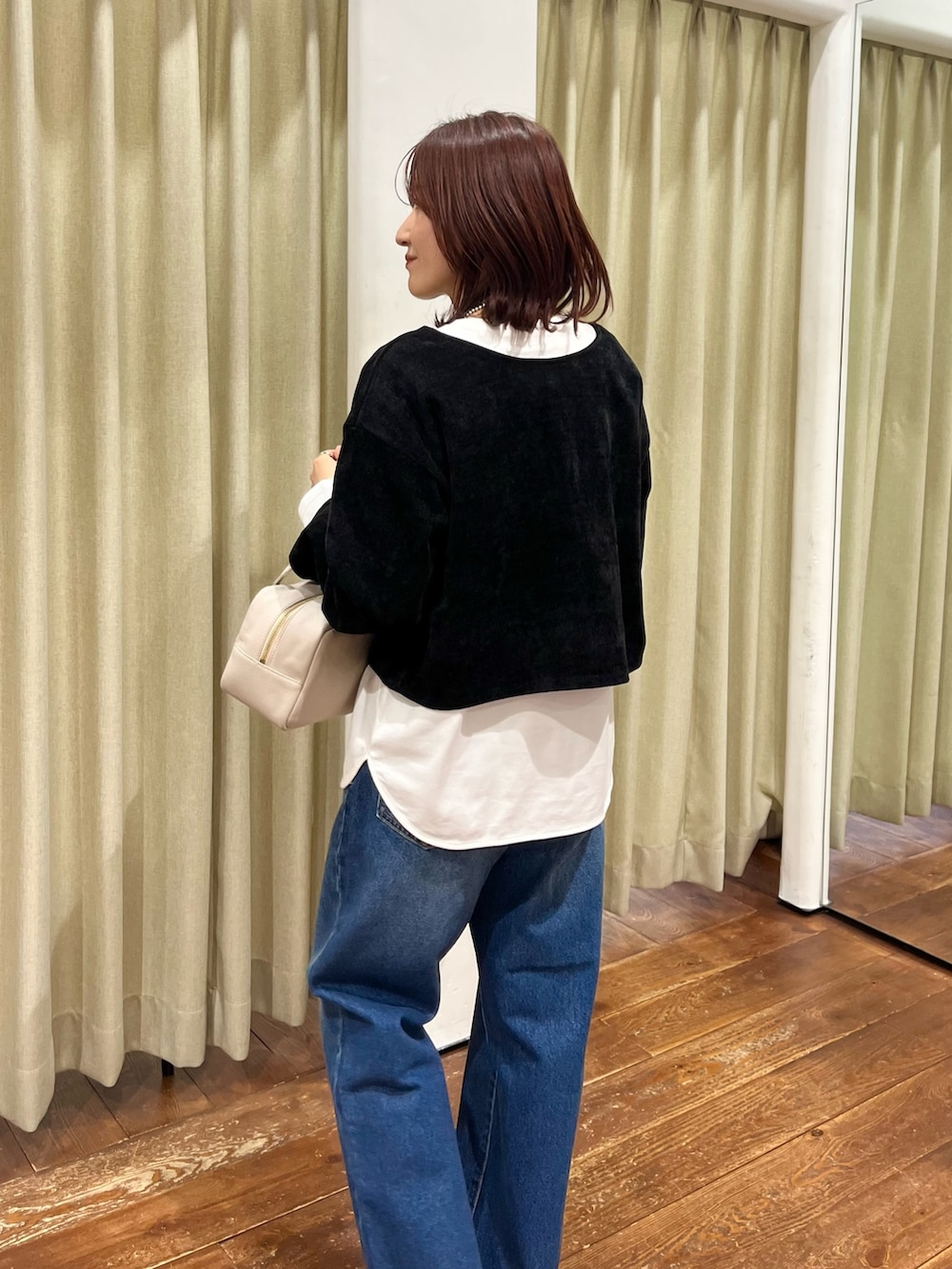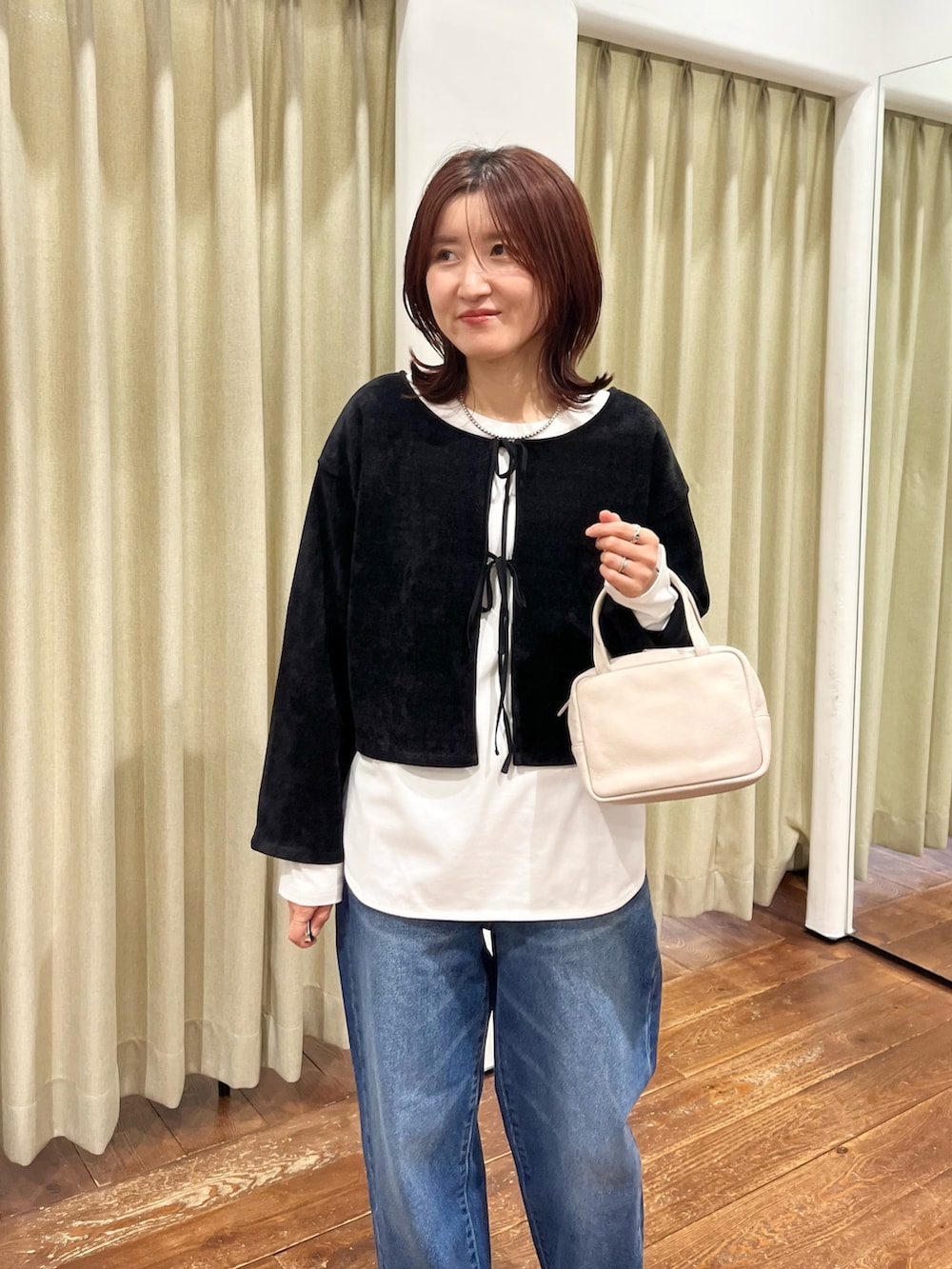 ベロアのカーディガンはデザインが可愛くインナーで雰囲気を変えていただけるので着回しがききます!カットソーだとカジュアルに合わせていただけます✨