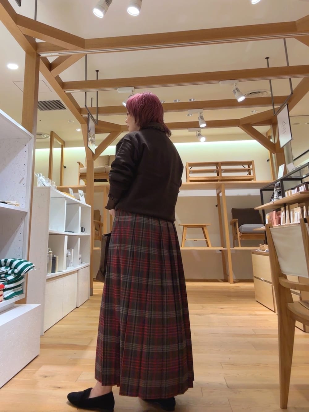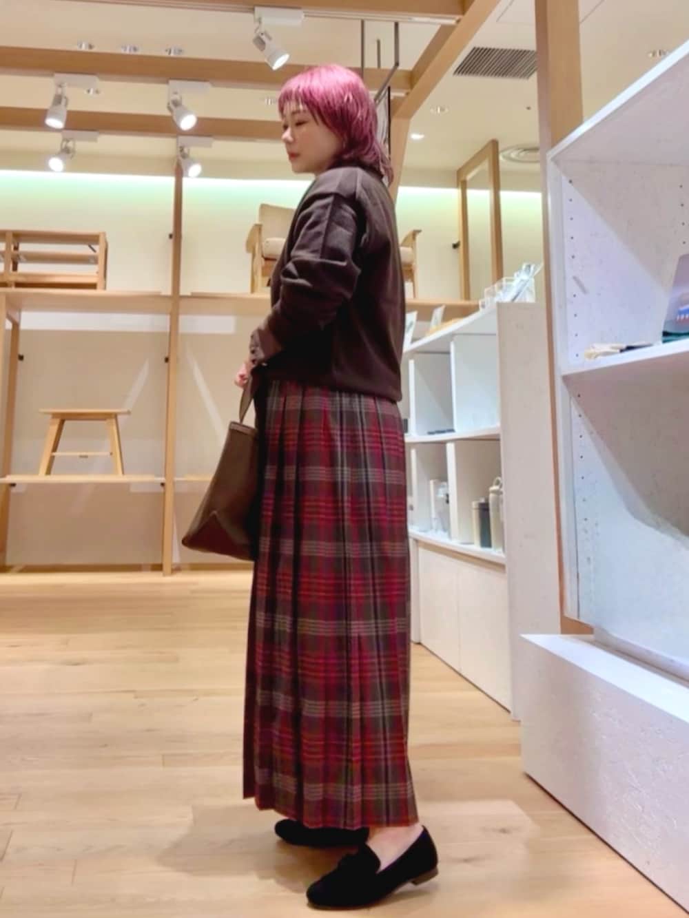 暖かいカラーを心がけました。低身長でも丈感よく履けました。パンプスと合わせましたがブーツでも◎だと思います!