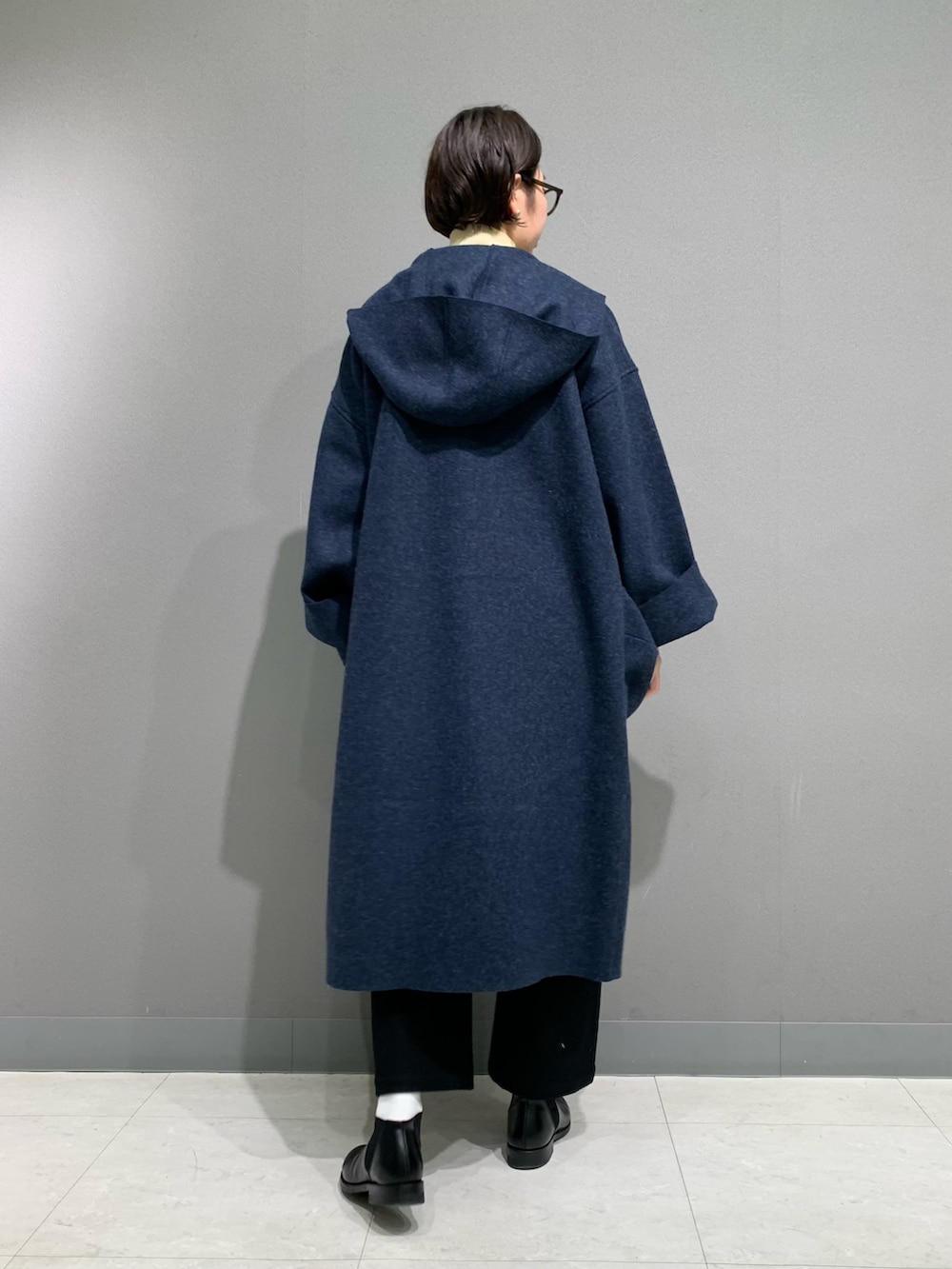 平面的なパターンと断ち切りのデザインが素敵なフードコート。大きいサイズをご用意しており、たっぷり目に羽織っていただくのがかわいいです。袖は自由に折り返し可能なためサイズ調整がしやすいです。普段使いにサッと羽織れておすすめです◎