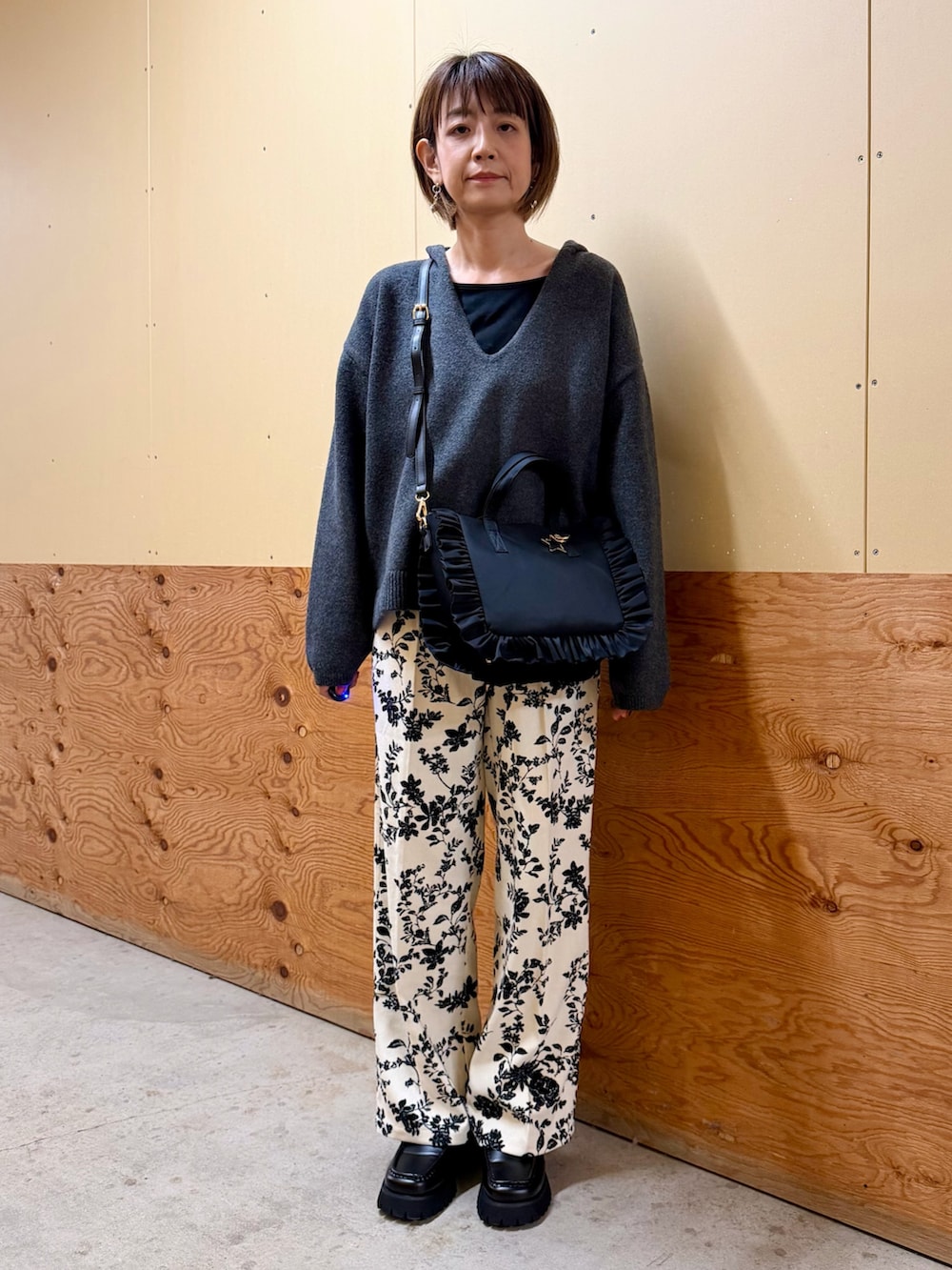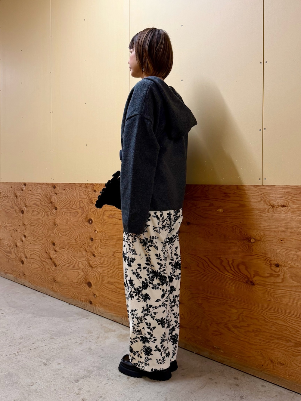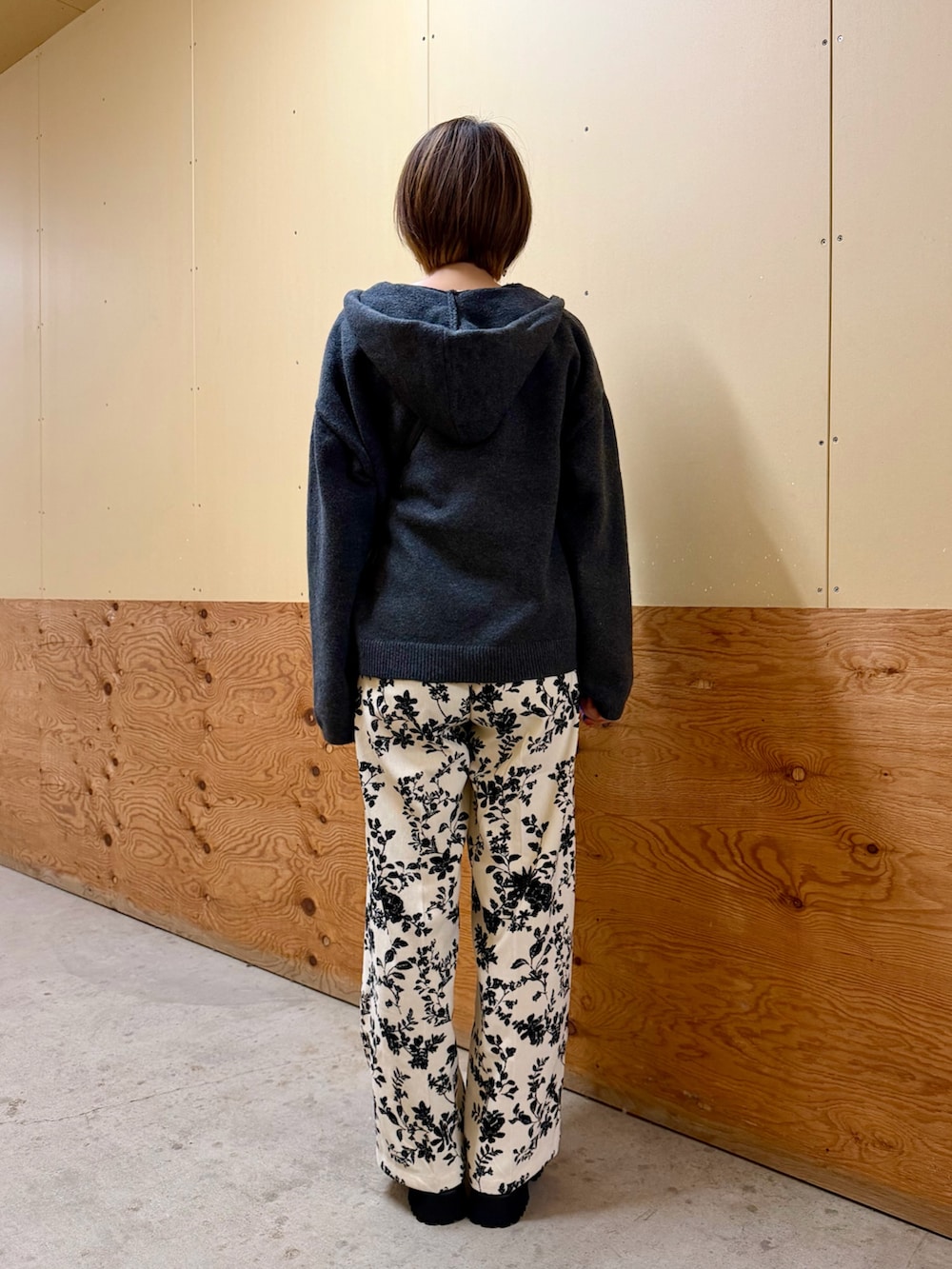 ゆったりとしたニットパーカーとパンツでカジュアルに。