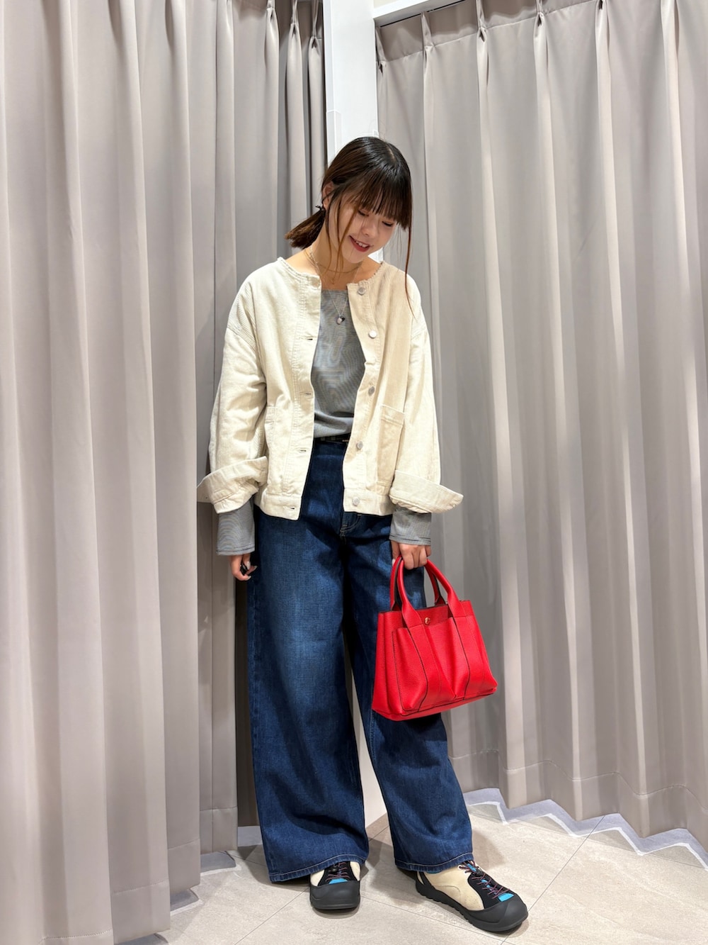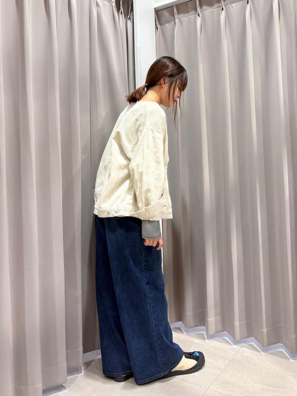 コーデュロイのノーカラージャケットはノーカラーなので綺麗めがお好きな方も着用していただきやすいです!