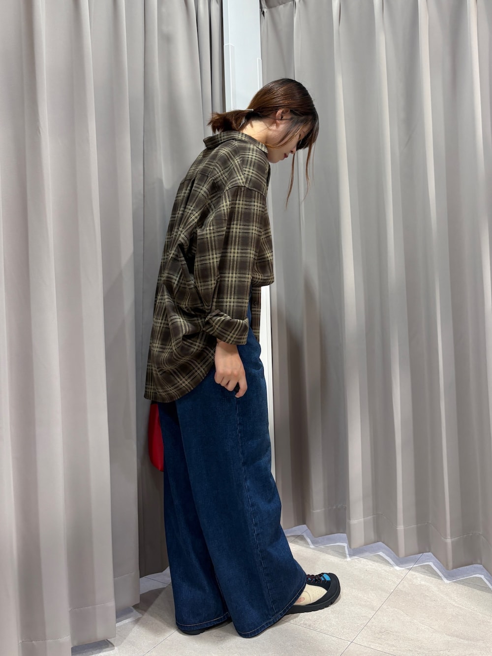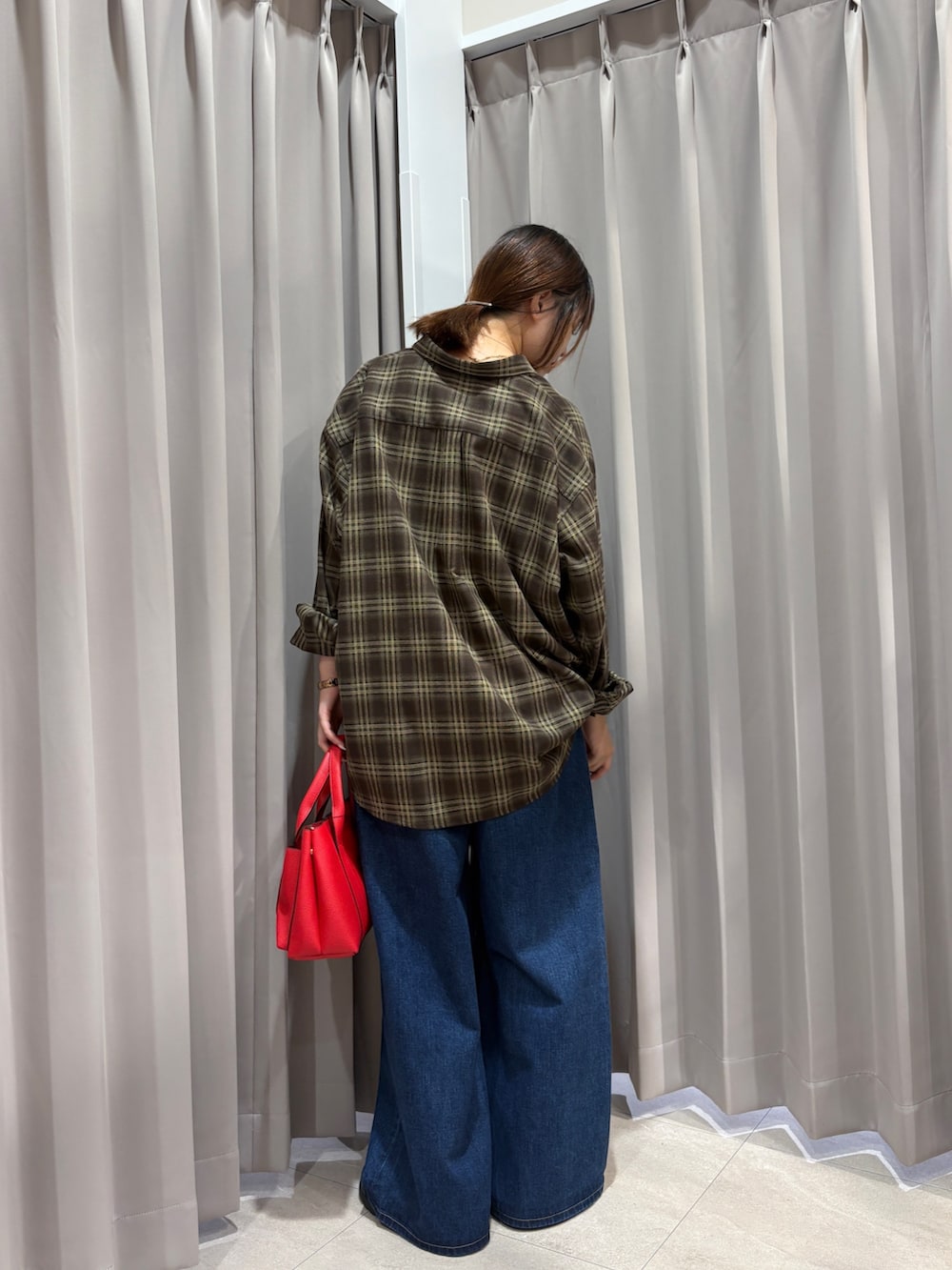 秋らしいカラーのオーバーサイズのチェックシャツは一枚着るだけで秋らしさのあるコーディネートに仕上がります✨