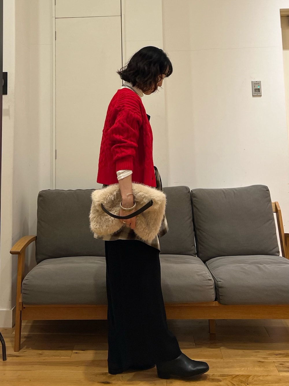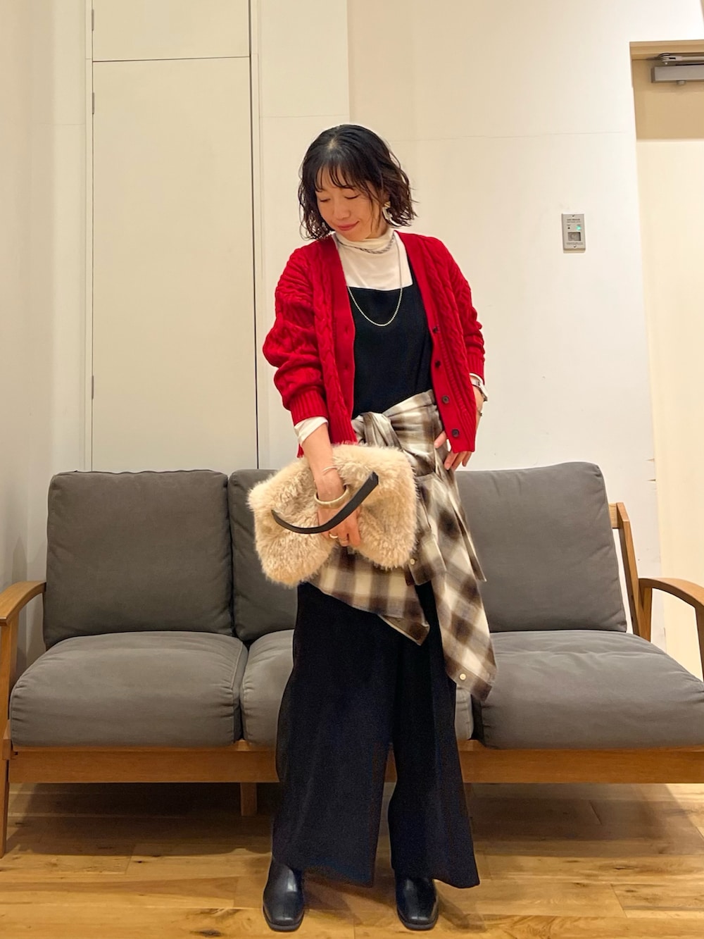 同じく入荷したばかりのフワフワのフラッフィーバッグを合わせると、すっかり秋本番コーデになります♪♪