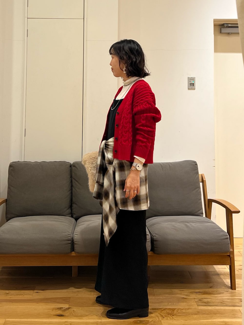オールインワンはMサイズで、163センチの私が着用すると裾丈それほど長くないので、ブーツと合わせるとバランスが良かったです。