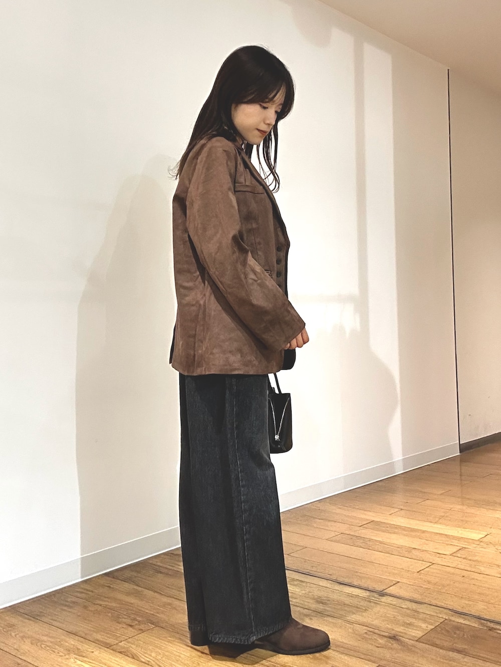 オーバーすぎず、かっちりしすぎずな抜け感のあるジャケットと光沢感のあるパンツ合わせで、一気に大人っぽ感を演出できます🍂