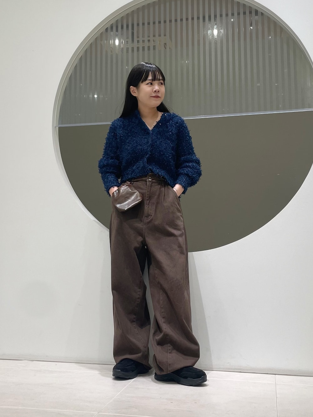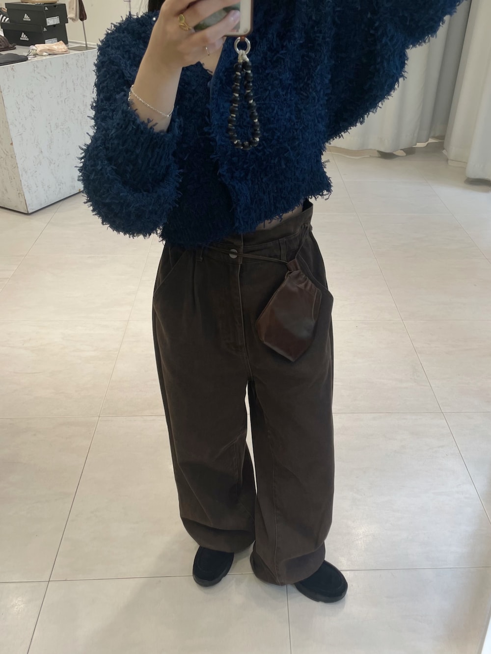 ニットは羽織にも使いやすく着回しが効きます!パンツもラインが綺麗で、デニムだとカジュアルすぎる..というときに使いやすいです!