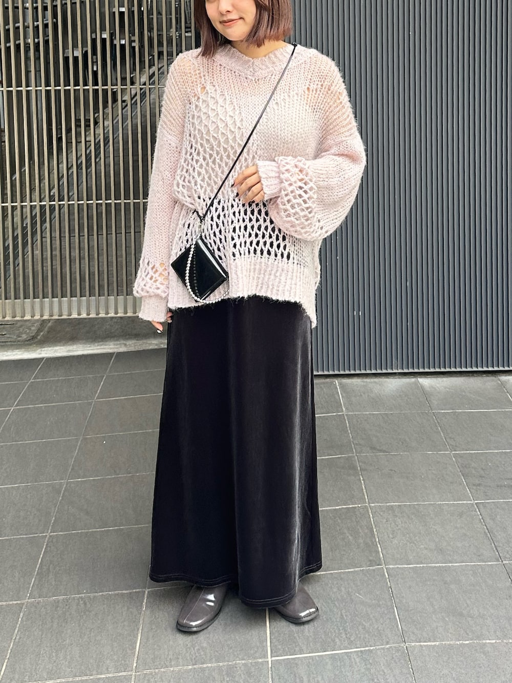 リアルバイしたベロアスカートは一気に秋冬感が出るのはもちろん、ウエストがゴムなので楽ちんです!綺麗めコーデには欠かせないアイテムです!