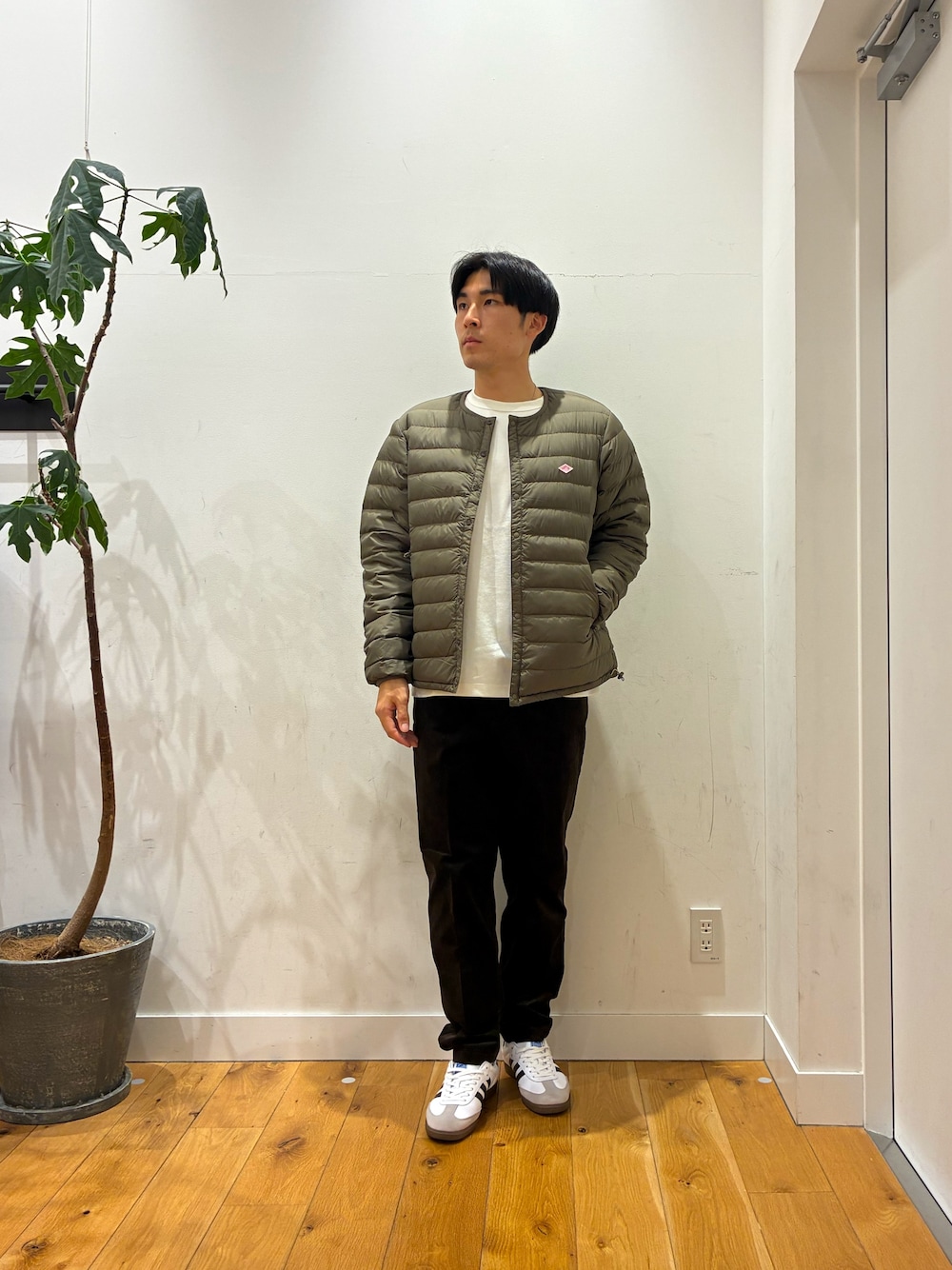 今回は冬コーデになっています!中に着ているニットにコーデュロイのパンツを合わせることで落ち着いた大人な印象になり、上下暗めな色なのでクリームのジャケットを着ることによりカジュアルになります!又、こちらのジャケットは黒もあり、オフィスカジュアルの格好にこのジャケットを着ることも出来ます!