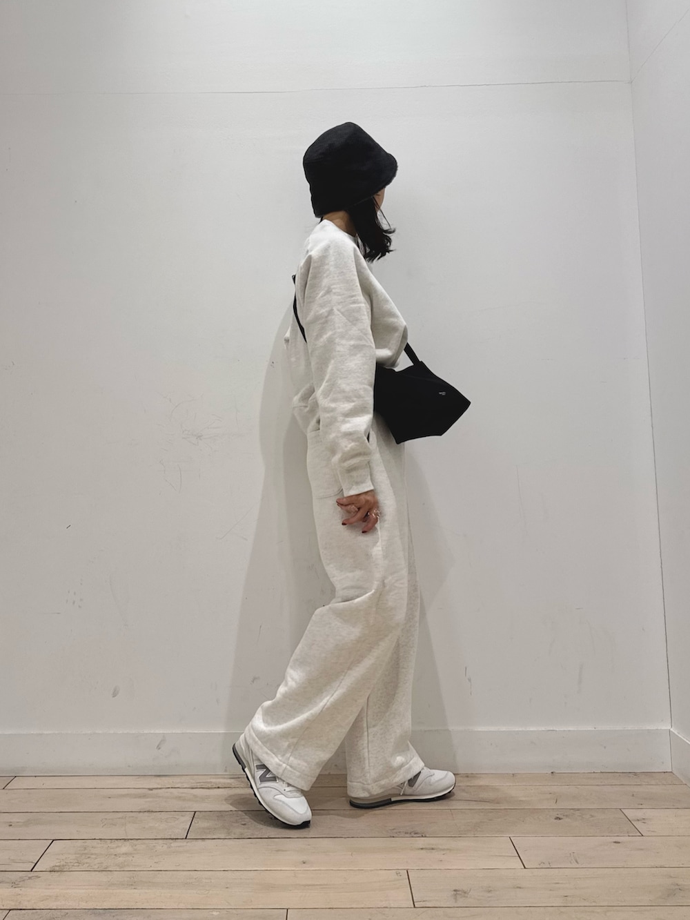 トップスの丈は短めなのでシャツやタートルネックを入れてレイヤードしても◎
