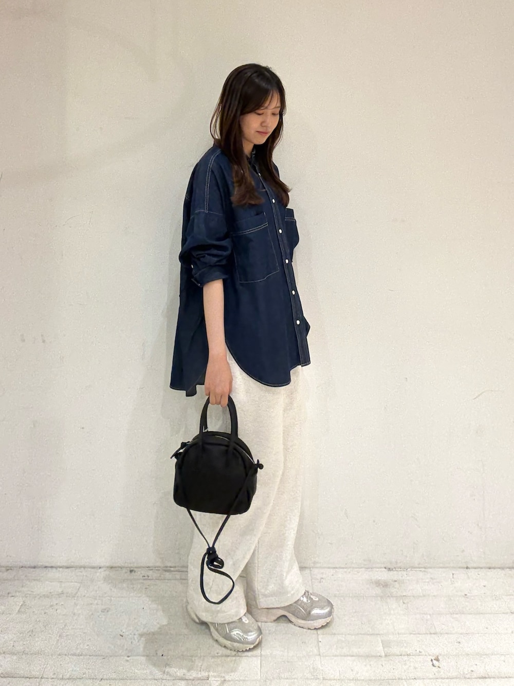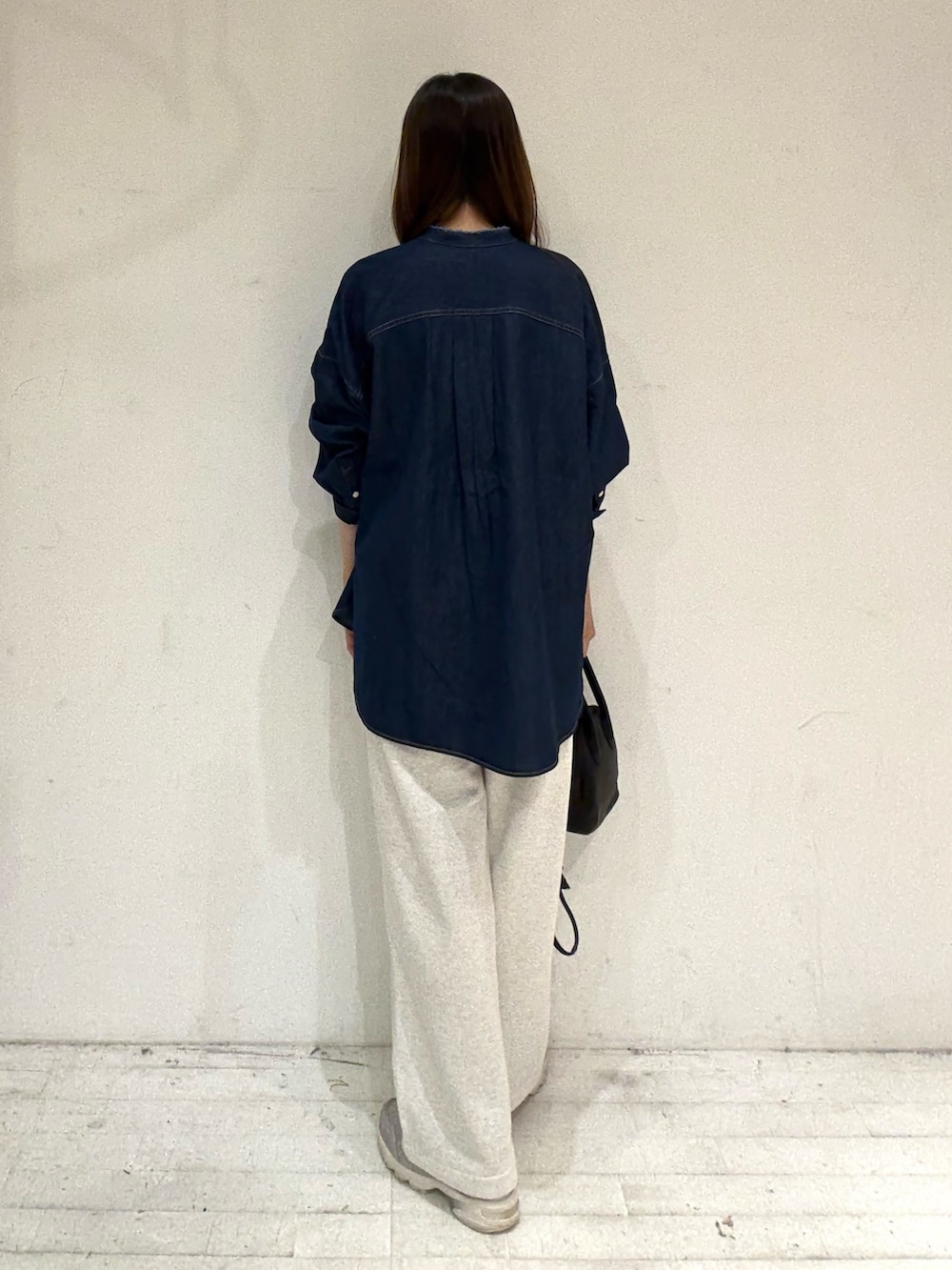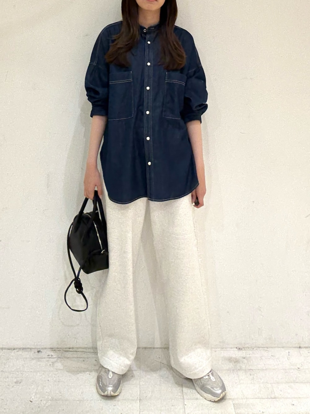 デニムシャツのほどよいハリ感に、裏毛スウェットパンツのやわらかさを合わせた、抜け感のあるカジュアルスタイルです!!