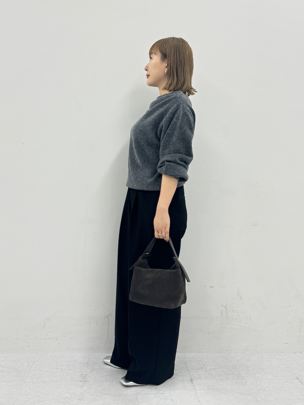 デニム合わせも良いですが、今回はブラックのパンツで大人っぽくモノトーンに◎