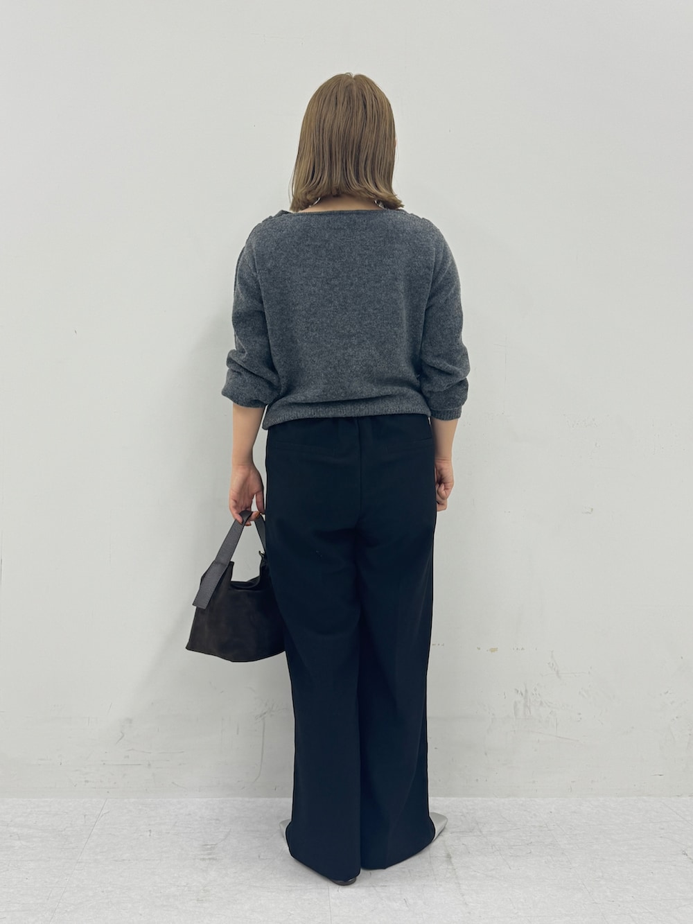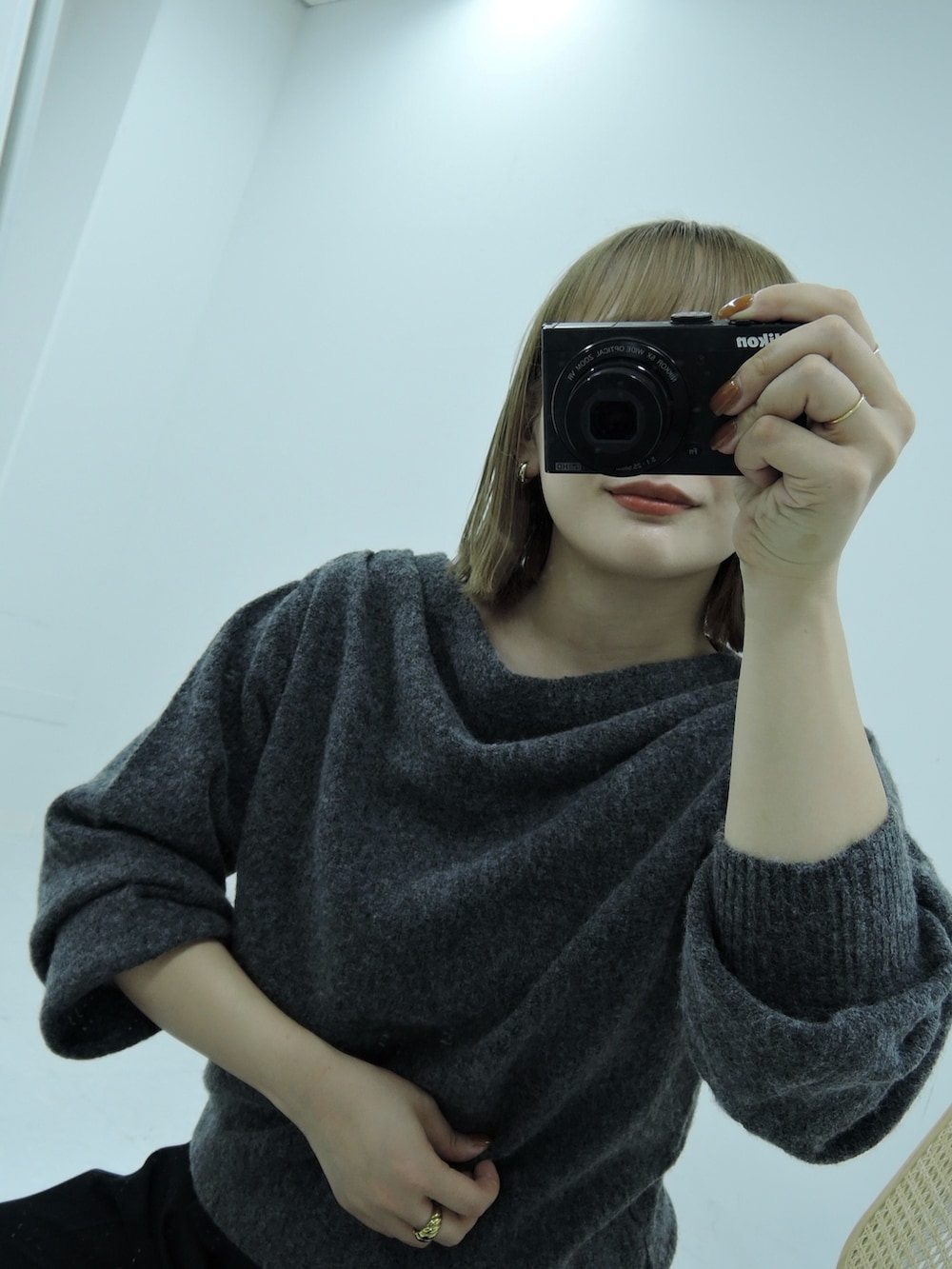 トレンドのドレープデザインのニットで首元は程よく開くので、骨格ストレートさんにぴったり!