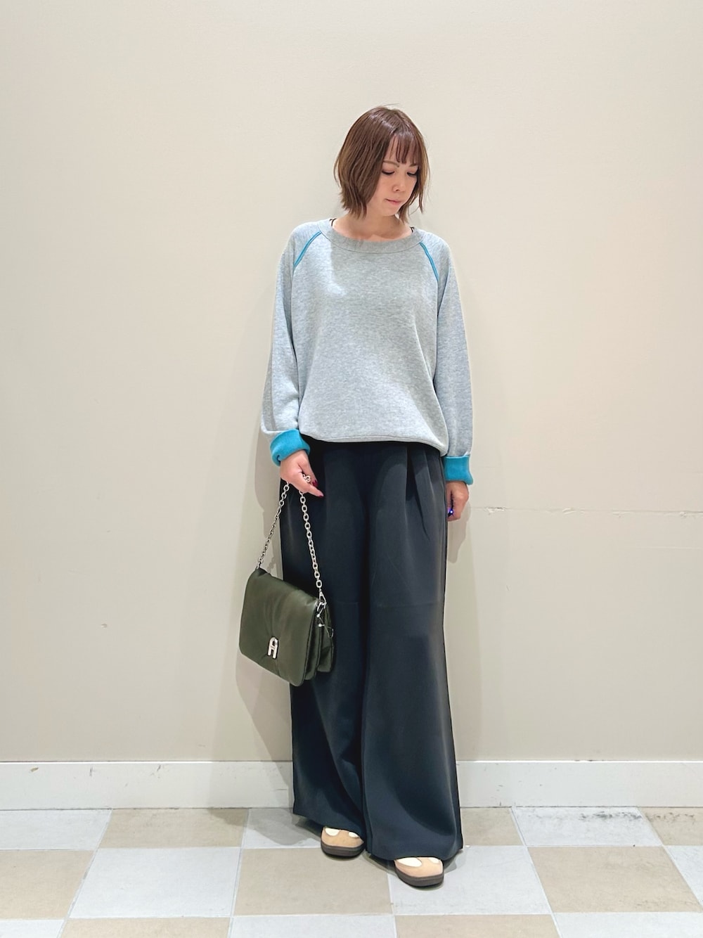 ふわふわな手触りの薄手のVネックニット、スエード調のタイトスカートとブーツで秋スタイルにしました!