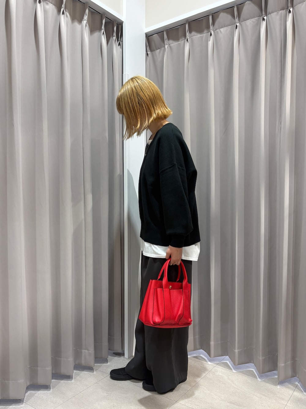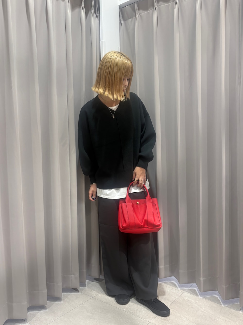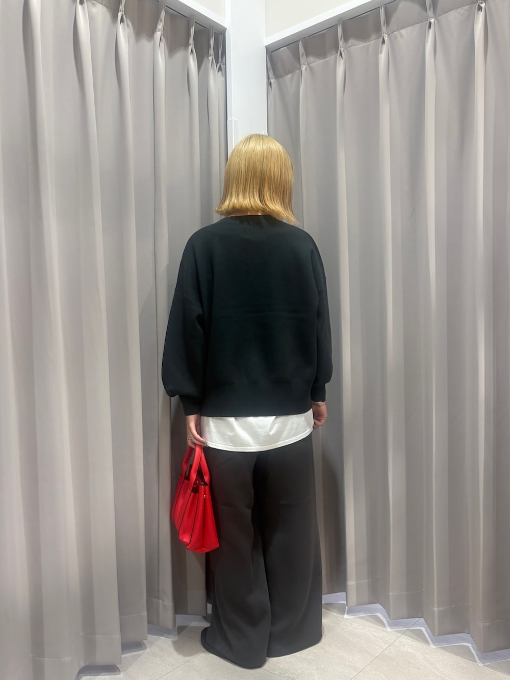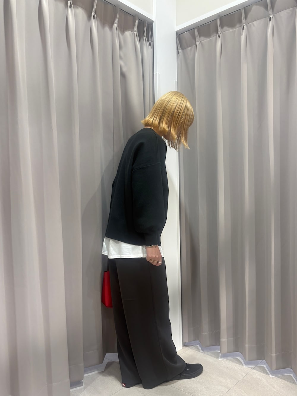 大きめのサイズ感のニットに裾からインナーを出してさりげなくレイヤードをすることでお洒落さを取り入れてみました!