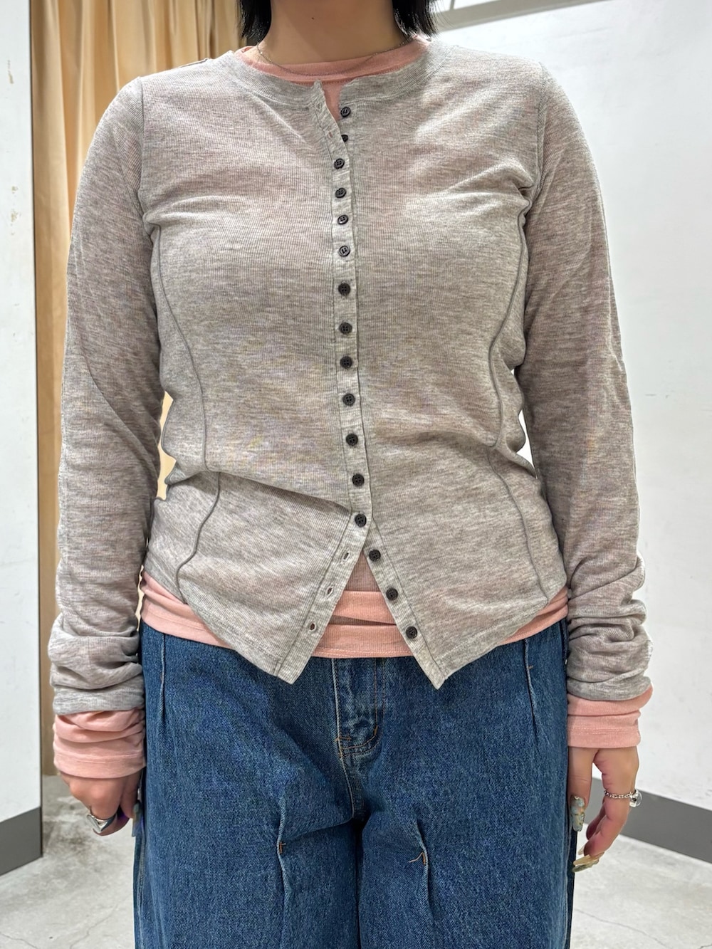 程よく透け感のあるシアーのカットソーとボタンいっぱいデザインが可愛いカーディガンがセットになった着回し力抜群のアイテムになっております!別々に使えるのでジャケットやワンピースのインナーにももってこいですねᵕ ᵕ ♡