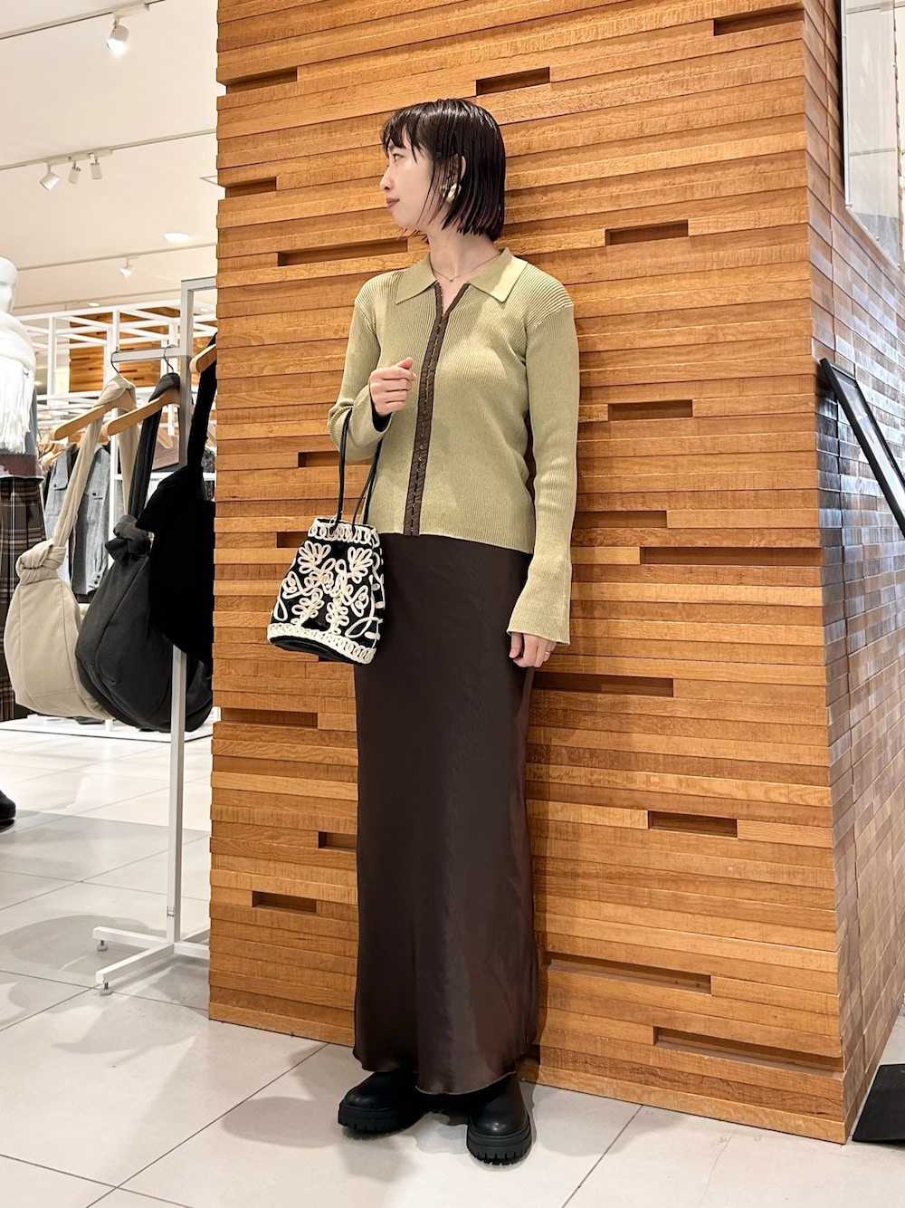 SENSE OF PLACEエンブロイダリーキンチャクバッグ- 着用カラー: