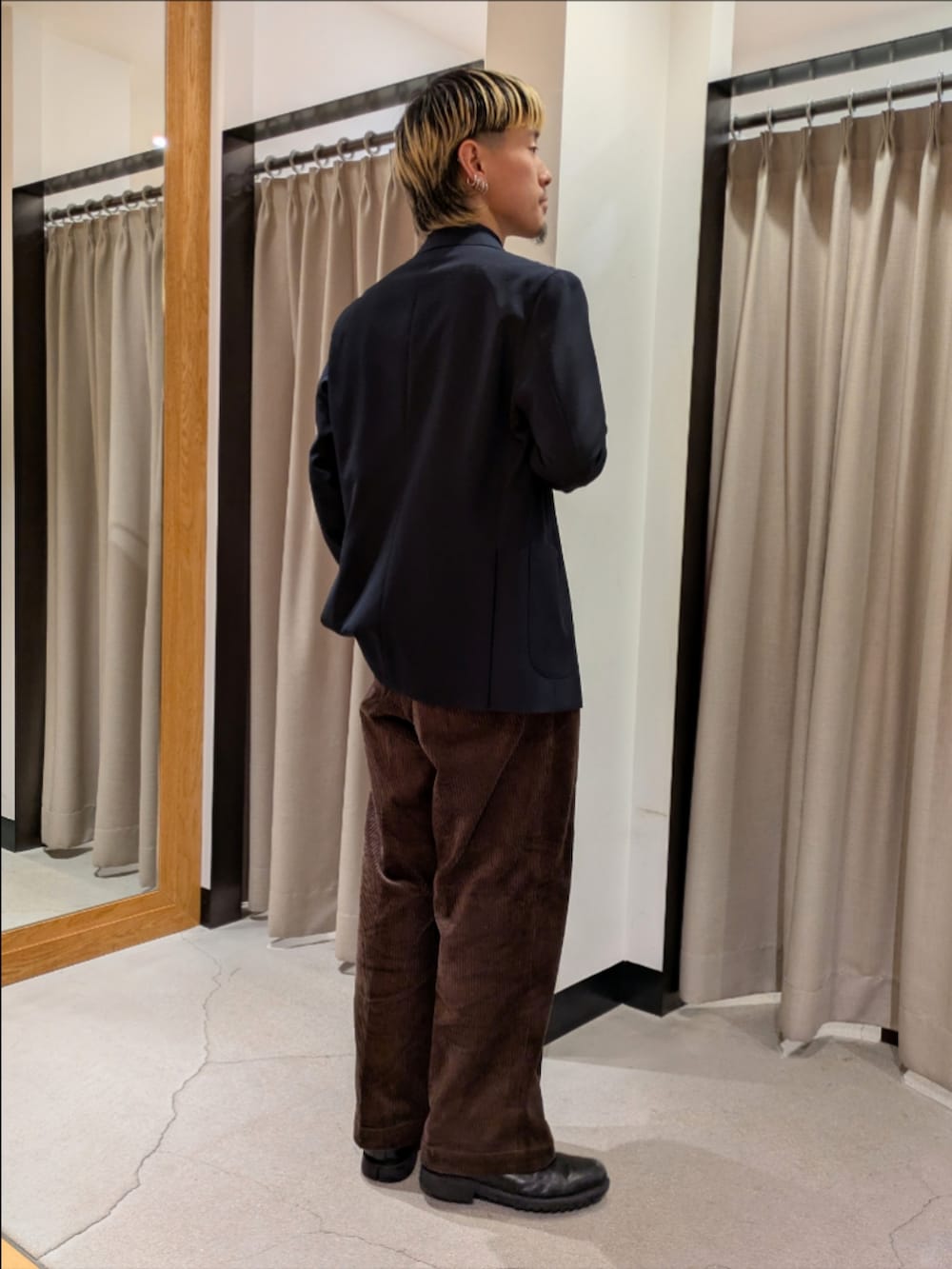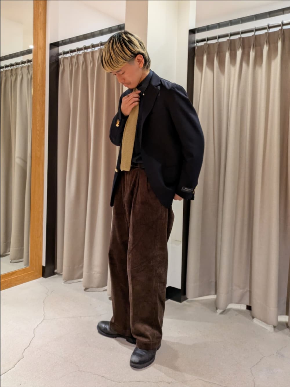 イタリアREDA社の素材を使用したメタルボタンブレザーに、太畝の上品なコーデュロイパンツを合わせたコーデです!