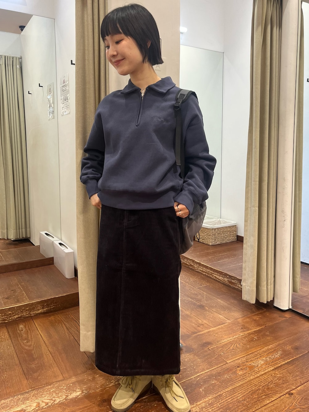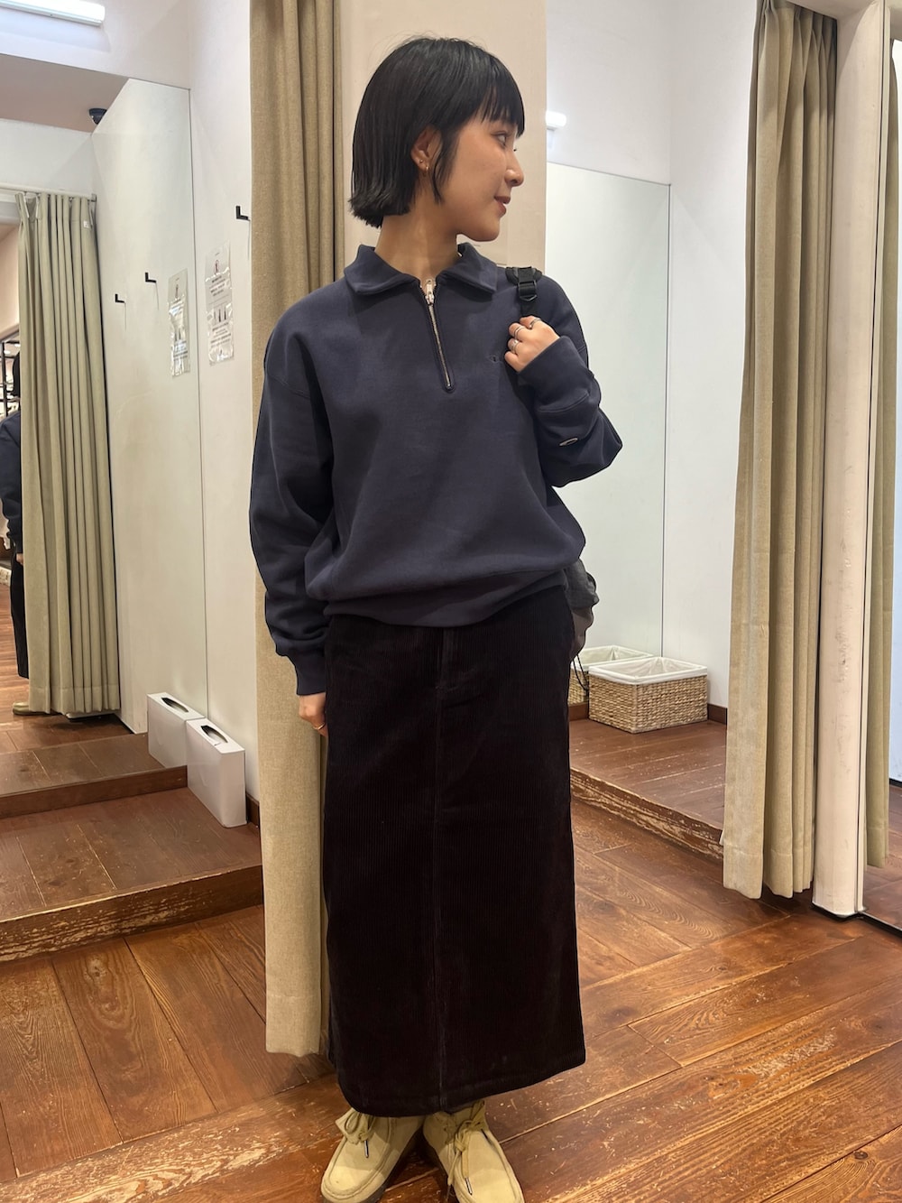 裏起毛でしっかり温かみのあるスウェットです。ジャストなサイズ感でスカート、パンツともバランスが取りやすいので合わせに困らない汎用性高いアイテムです😙