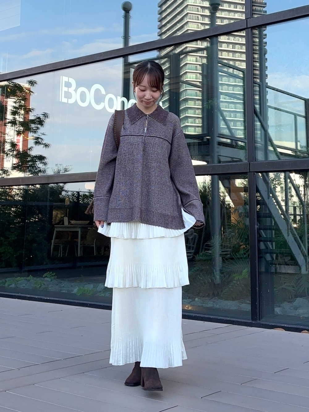 コーデに華を与えてくれるティアードスカートはオーバー目なトップスやニットで合わせてあげるとバランスも取れて◎