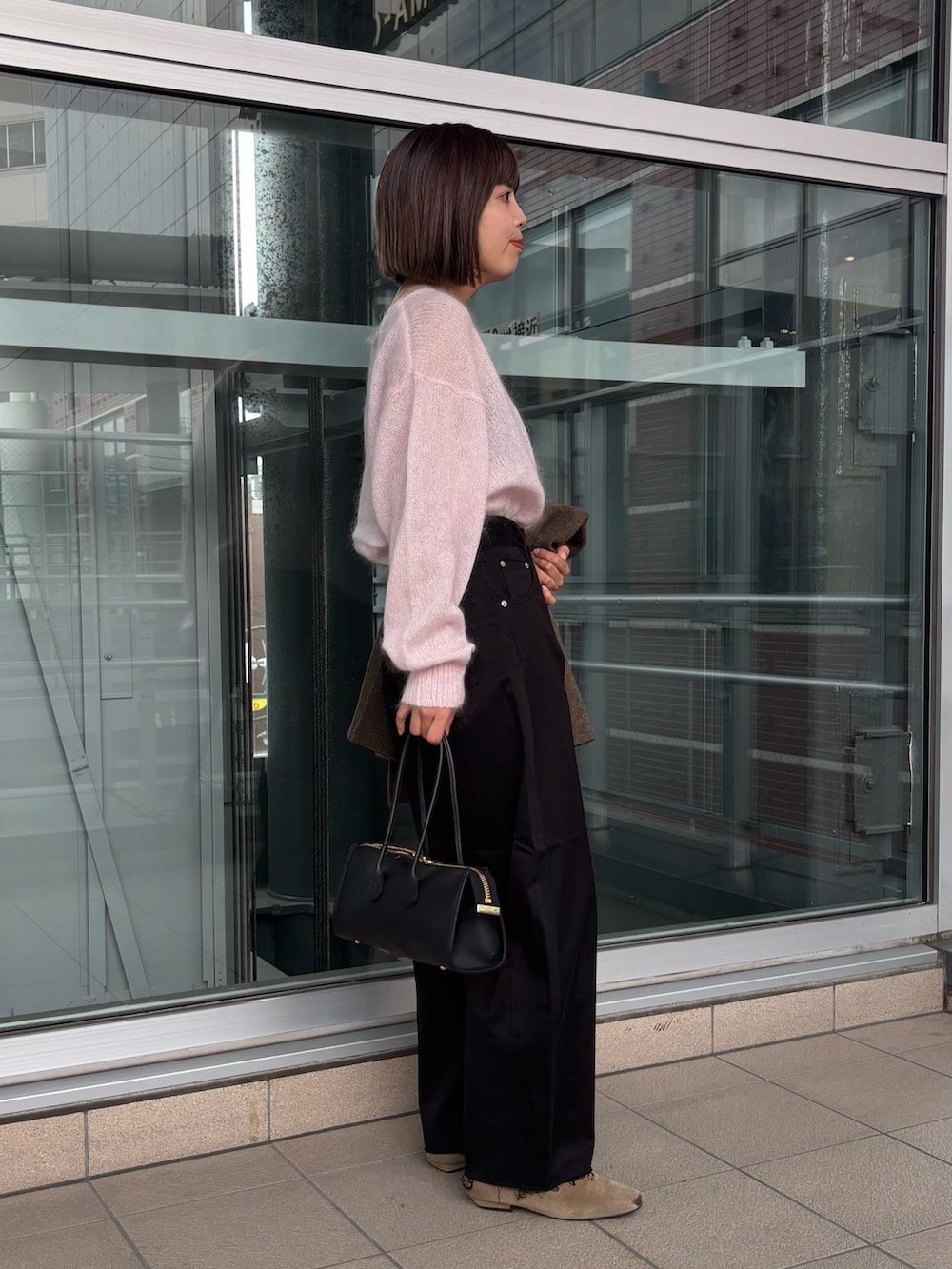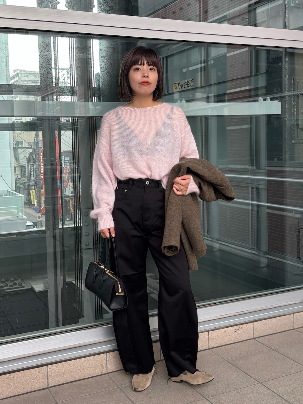 差し色に新作で入荷したヘアリーニットのピンクを合わせてみました!