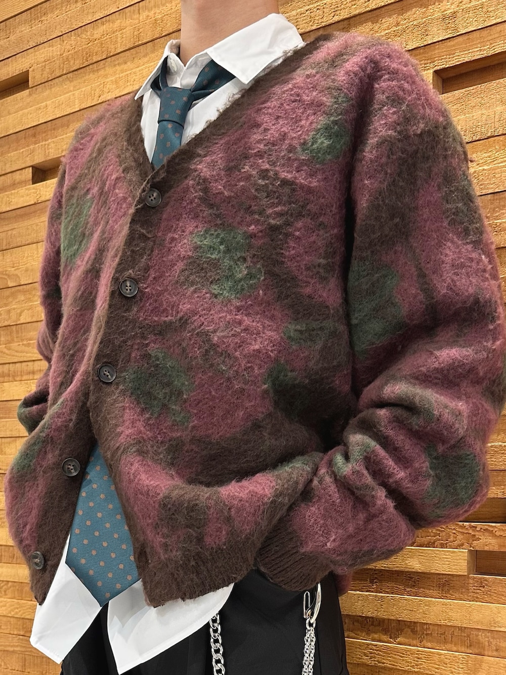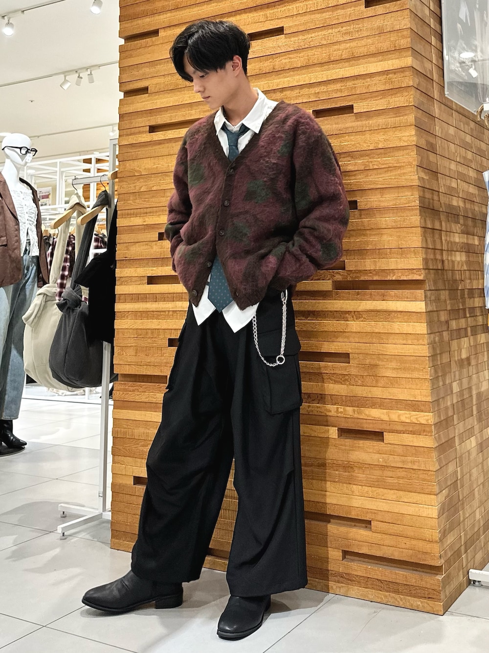 このコーデの中でも特に見せたいアイテムです!くすみボルドーのアートっぽさが一気に雰囲気を出します!シャツの綺麗さとのギャップでメリハリのついたコーデを作れます!!