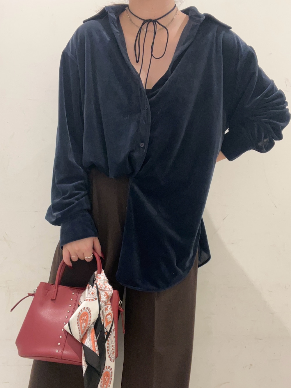 ベロアシャツはリボンアレンジがかわいいのでチョーカー風にしたりウエストマークしたり雰囲気変えられます◎冬イチオシパンツはなにより生地感が気持ち良い!!色展開も使いやすいのでチェックしてください〜