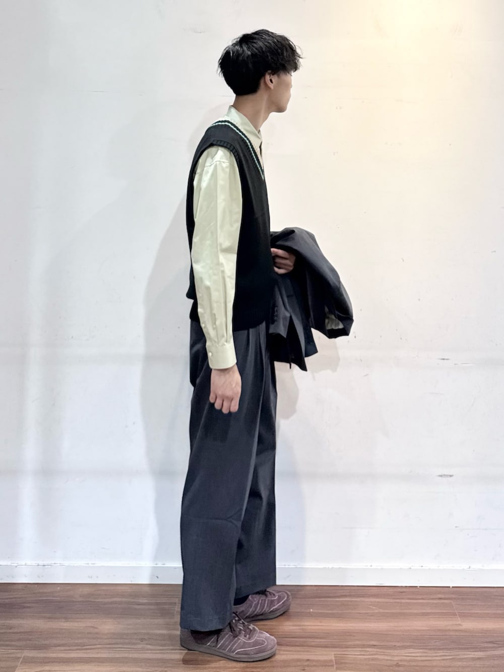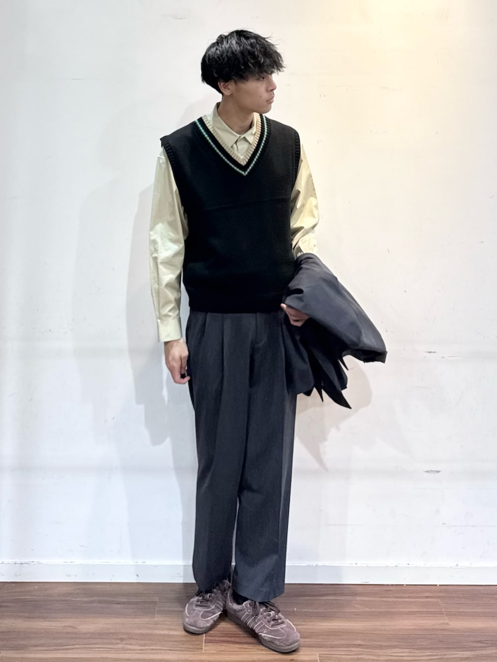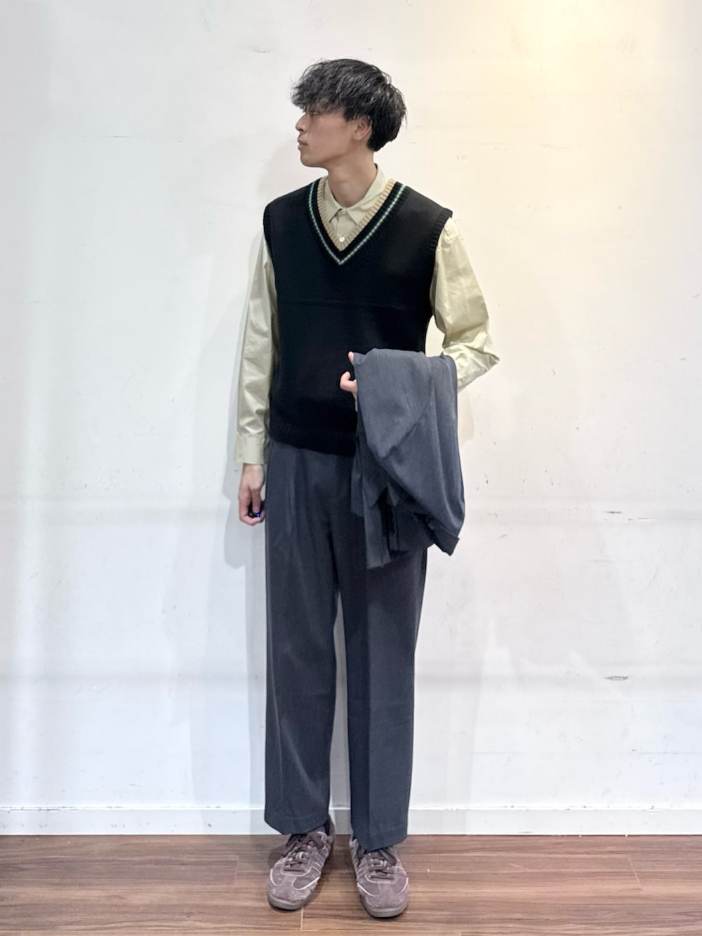 キレイ目に寄せたかったのでTHOMAS MASONのシャツにベストを。
