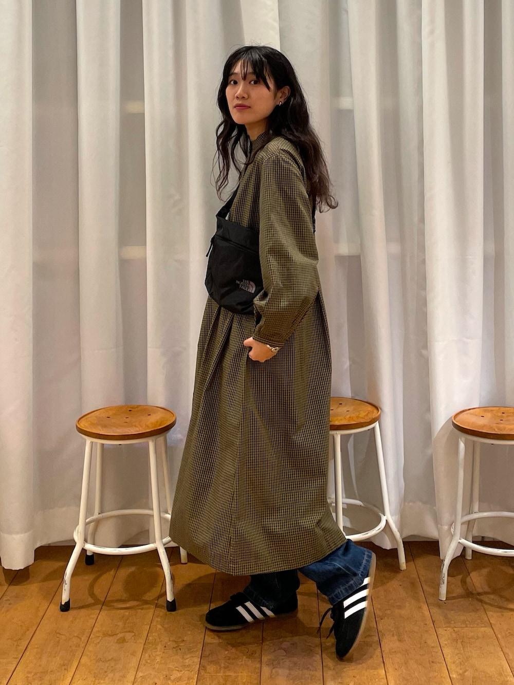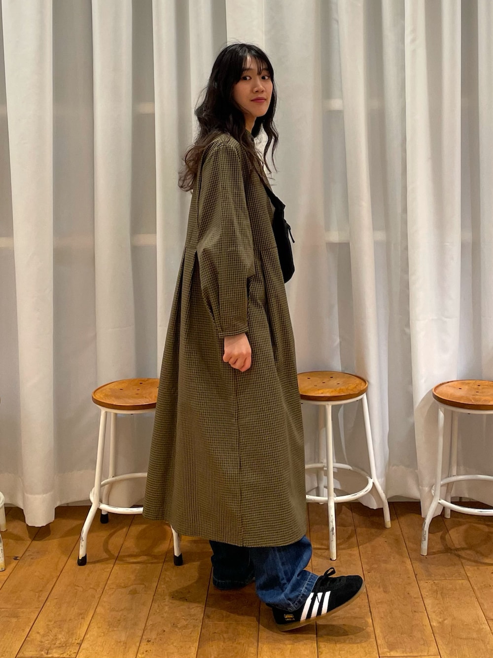 今回は下にデニムを履いてカジュアル感をプラス。