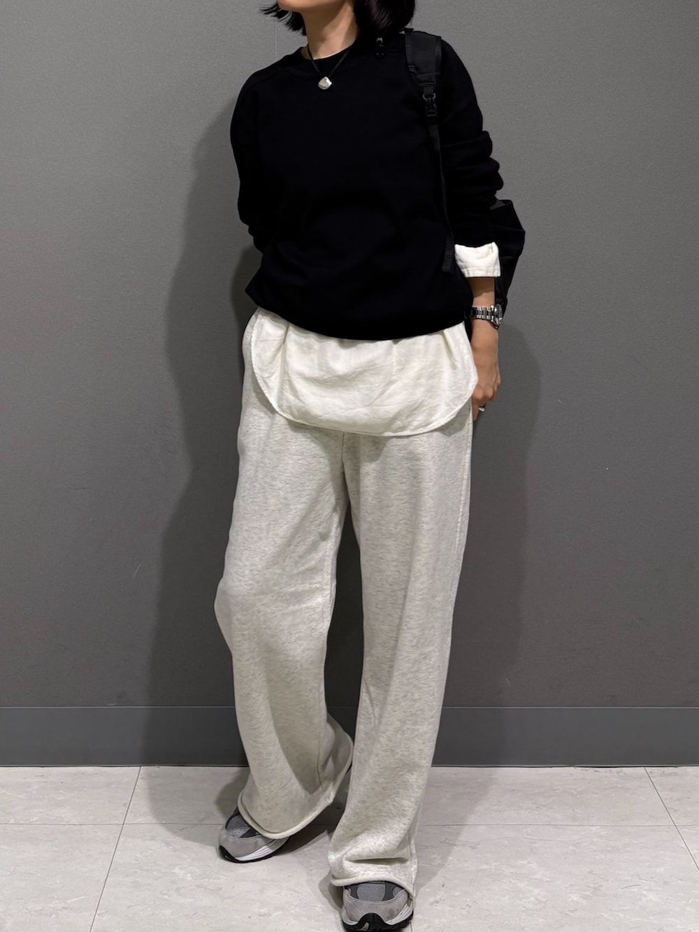 スウェットパンツのコーディネートでも、中にシャツを挟むとラフになり過ぎないのでおすすめです🫡