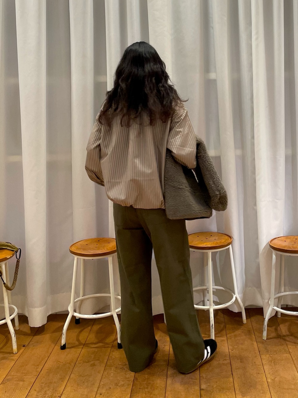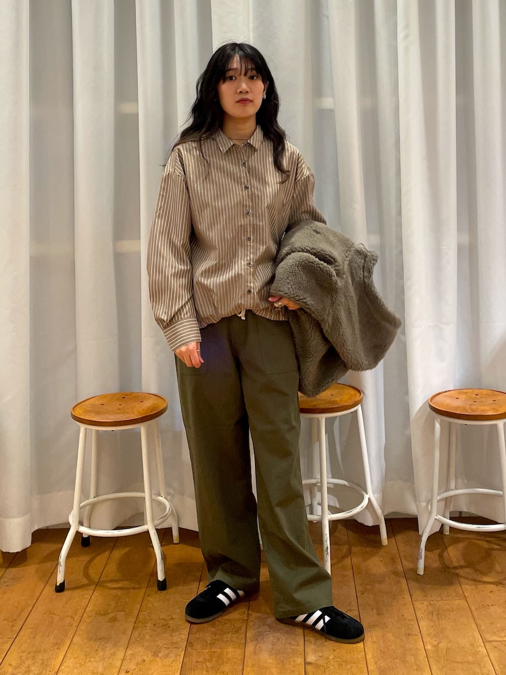 下に合わせたストライプのシャツとも相性が良く可愛いです◎