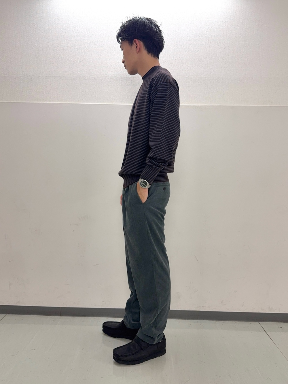 今回はボーダーニットとコーデュロイのパンツを使ってコーデを組んでみました。