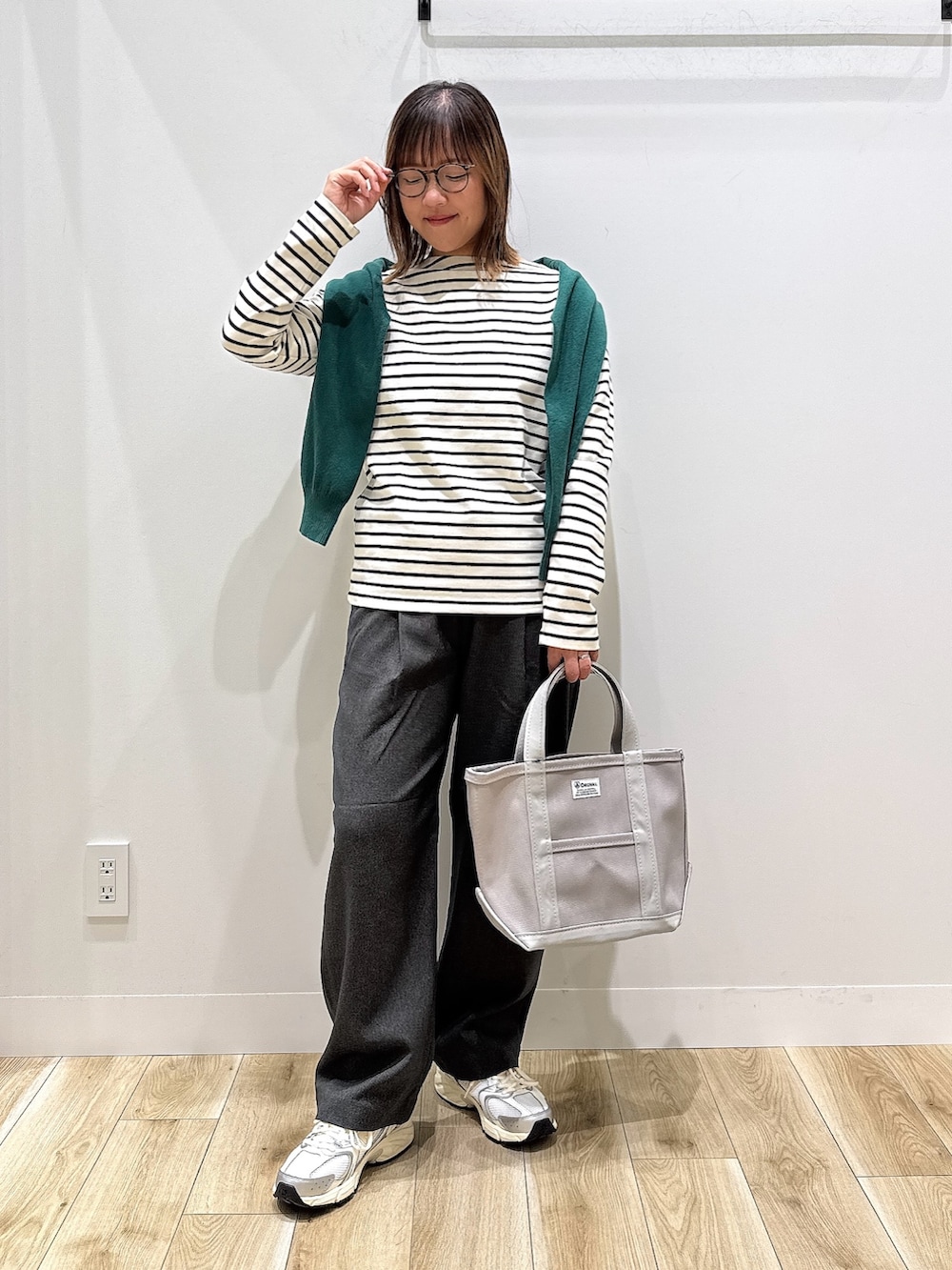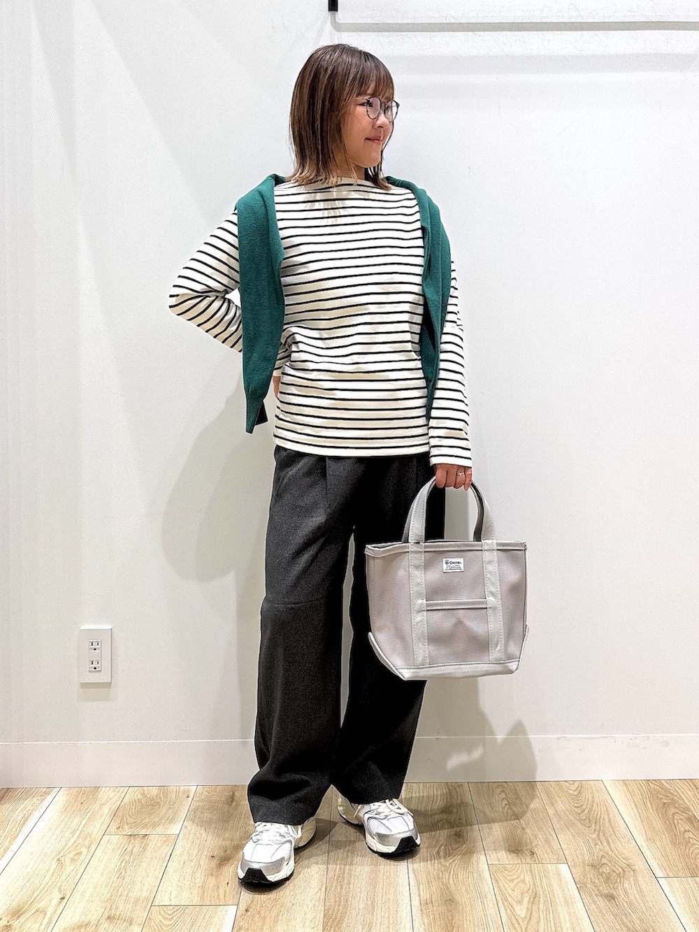 定番のボートネックボーダーはどんなコーデにも合わせやすく