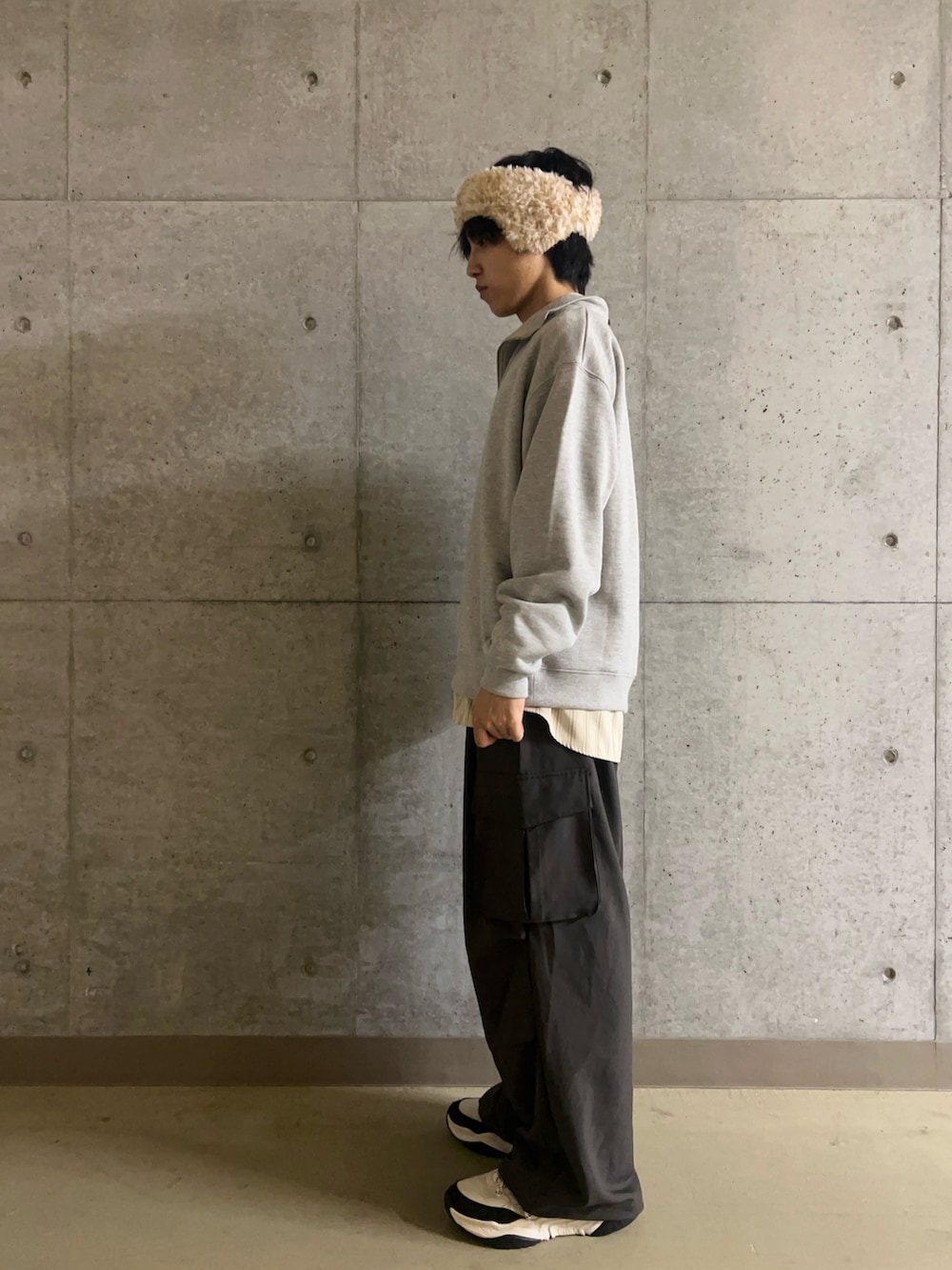 足元はボリューム感のあるスニーカーでバランスを取り、ふわふわのファーヘアバンドが季節感と遊び心を演出しています!