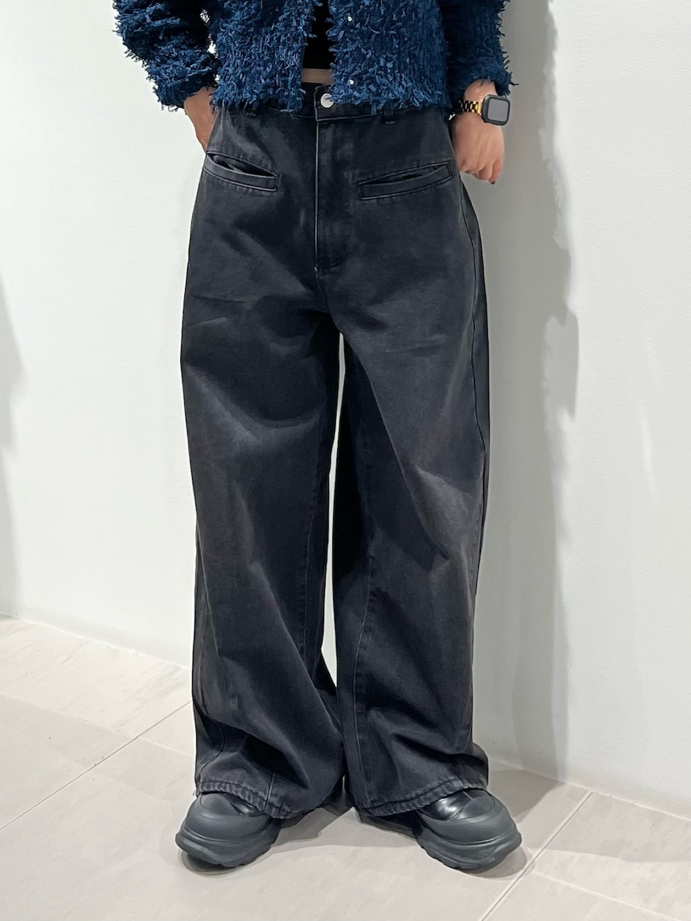 デニムはすっきりとしたシルエットで、これから増えるニット類合わせやすいですよ!