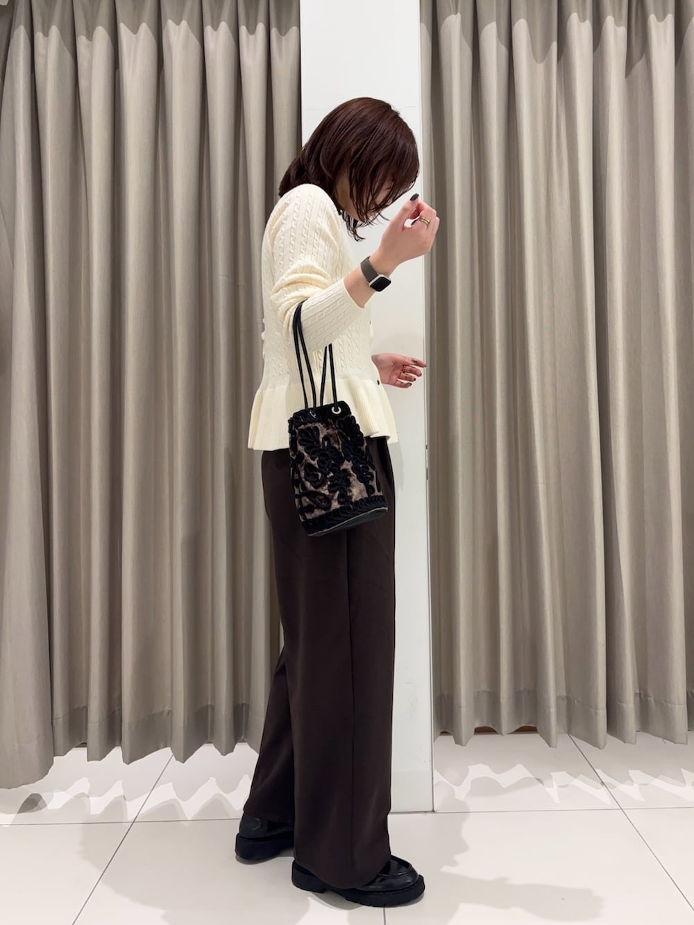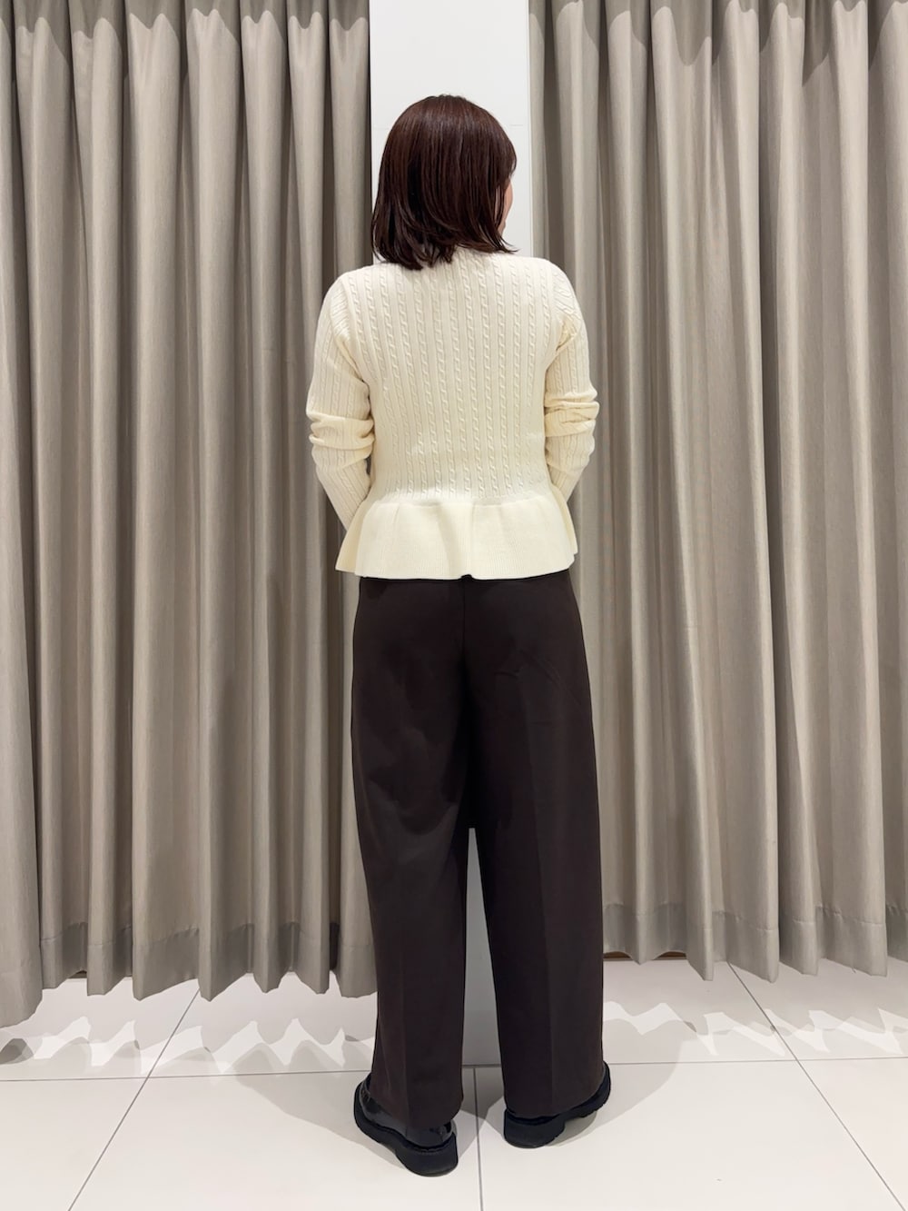 デザインが凝ったアイテムなので、シンプルにスラックス合わせでも◎