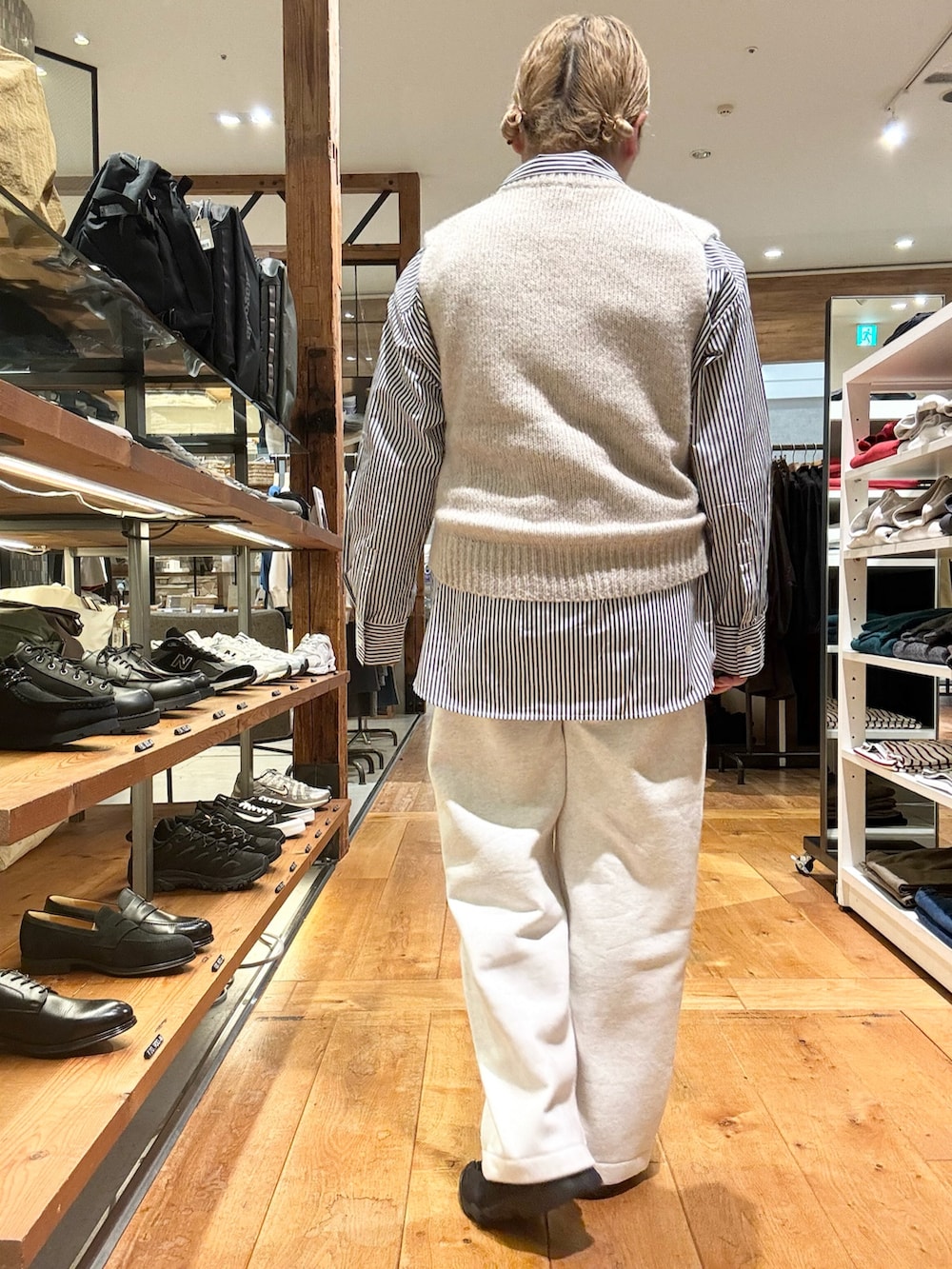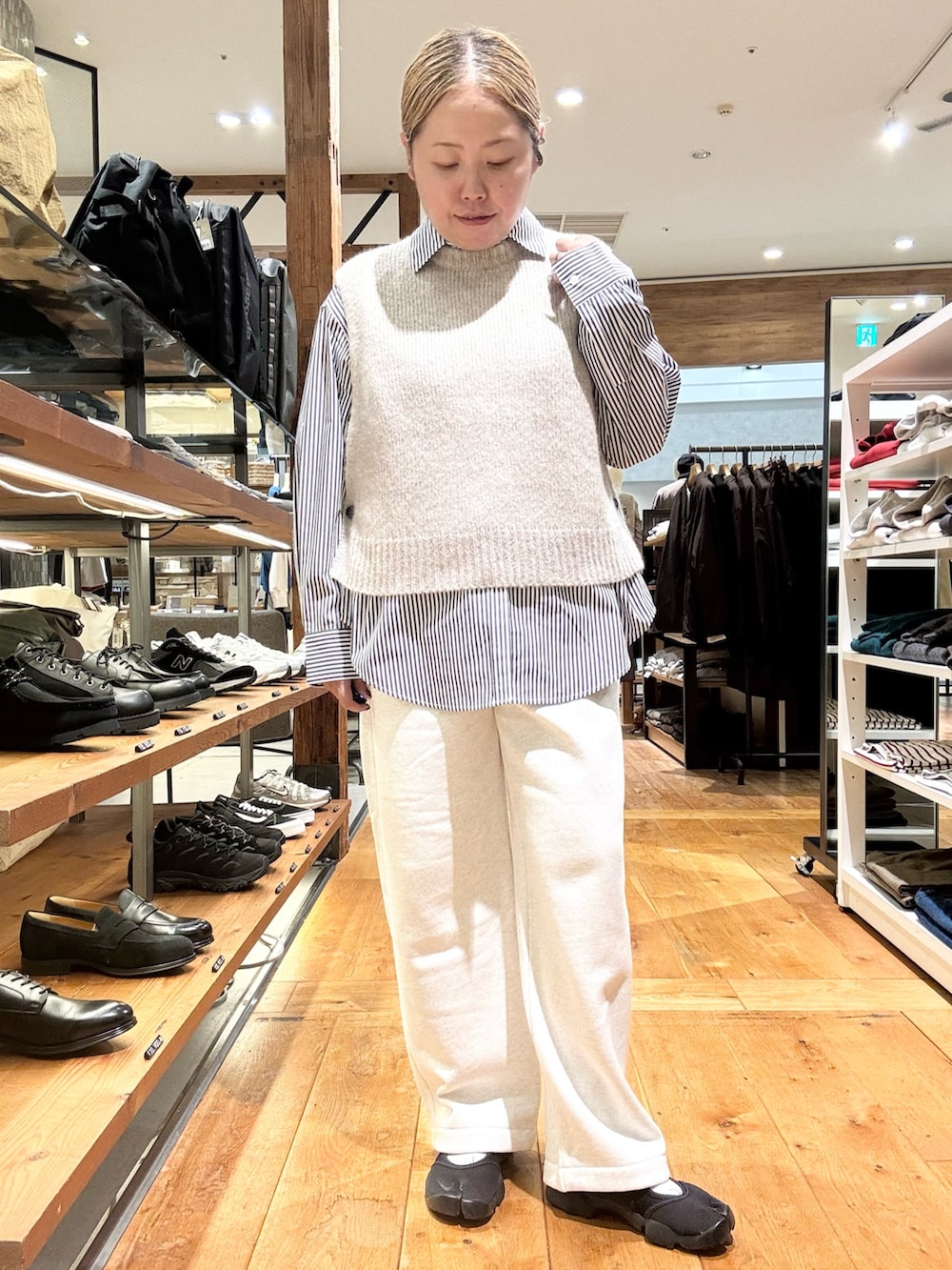 柔らかい生地のニットベストをレイヤード✨️