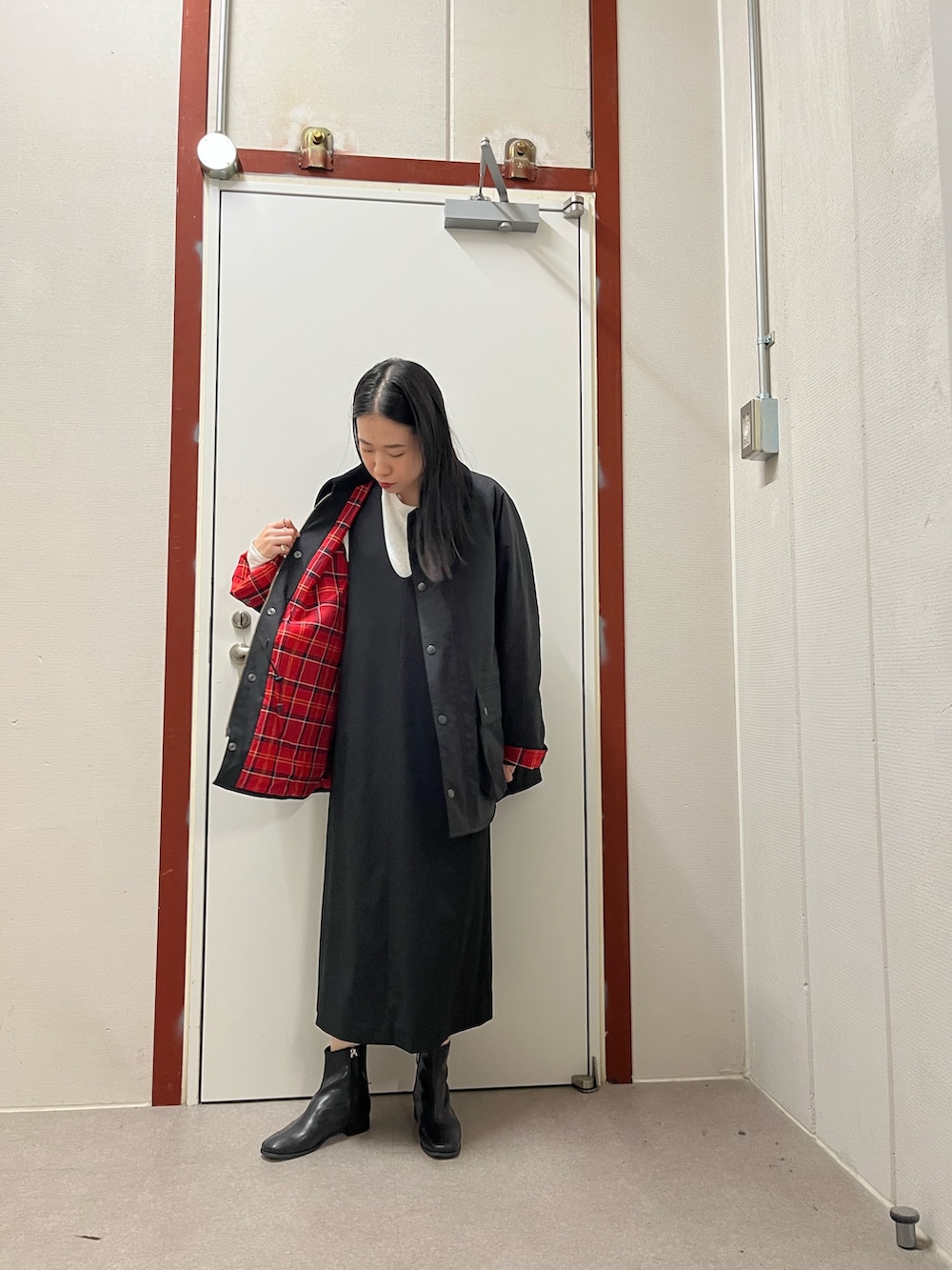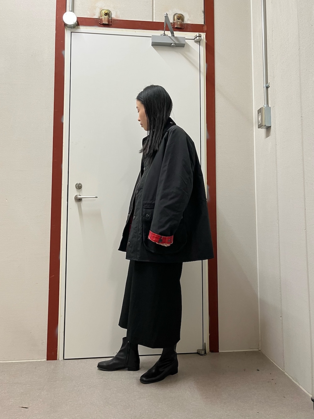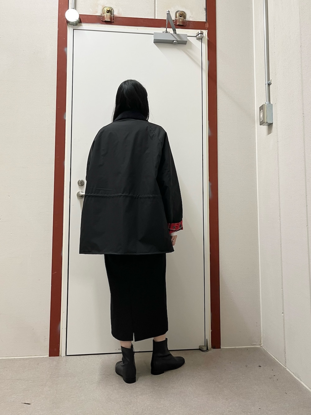 今年の別注バブアーは形も色も素敵ですー!!私はストンとした状態で着用してますが、ウエストを絞ることもできます。