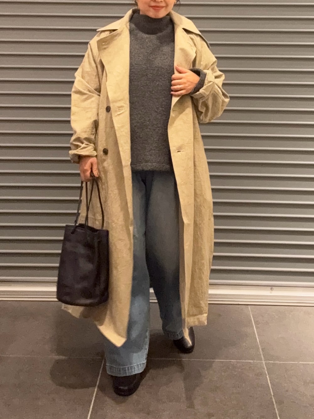 少しはりのある素材でこなれ感の出る上品なトレンチコートです。