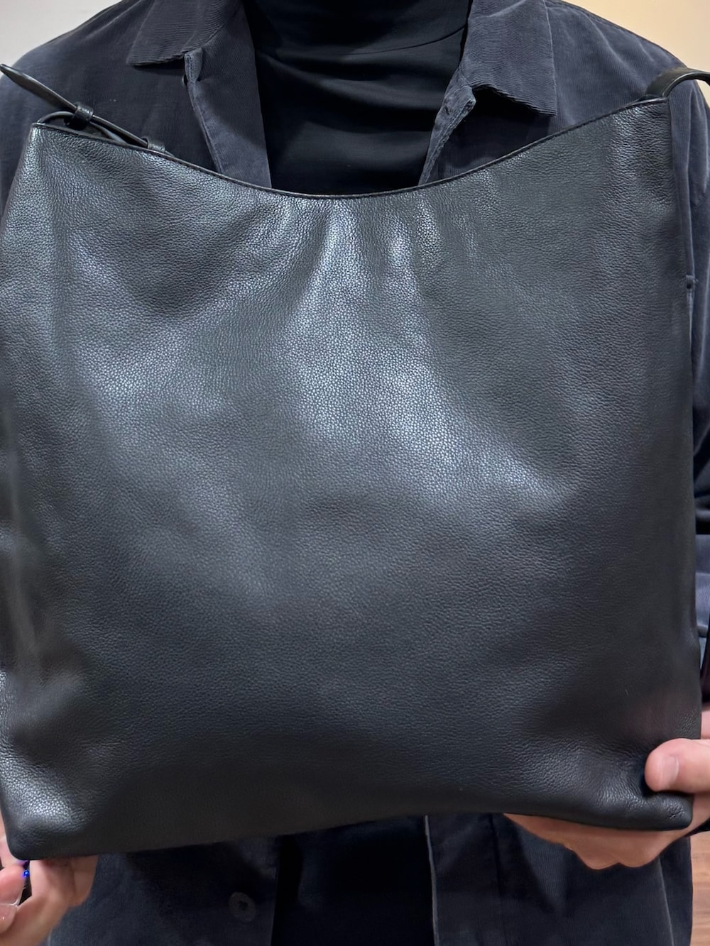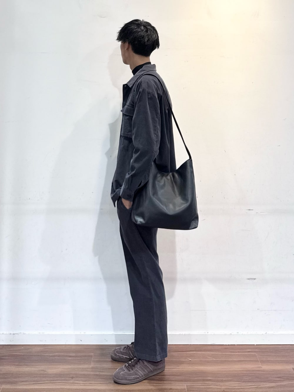 バッグは牛革のリアルレザーバッグ。フェイクレザーバッグも良いですが、リアルレザー特有のシボ感であったりは本革じゃないと出せない風合い。