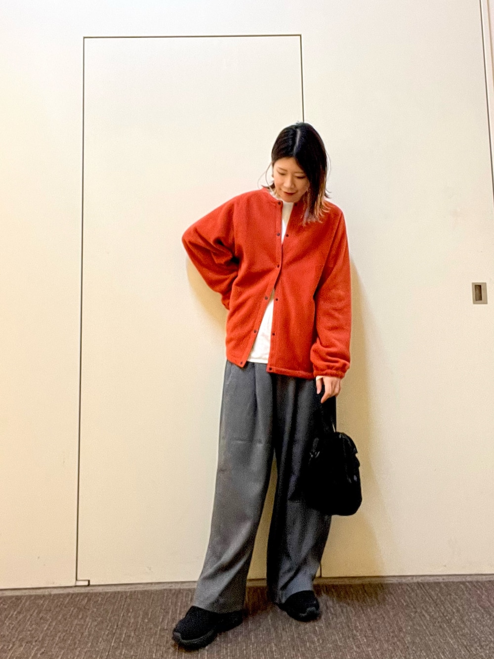 EKALのフリースリバーシブルカーディガンは蓄熱発熱機能のあるフリースで真冬まで活躍するアイテム◎コートの中にも着用できるサイズ感です!