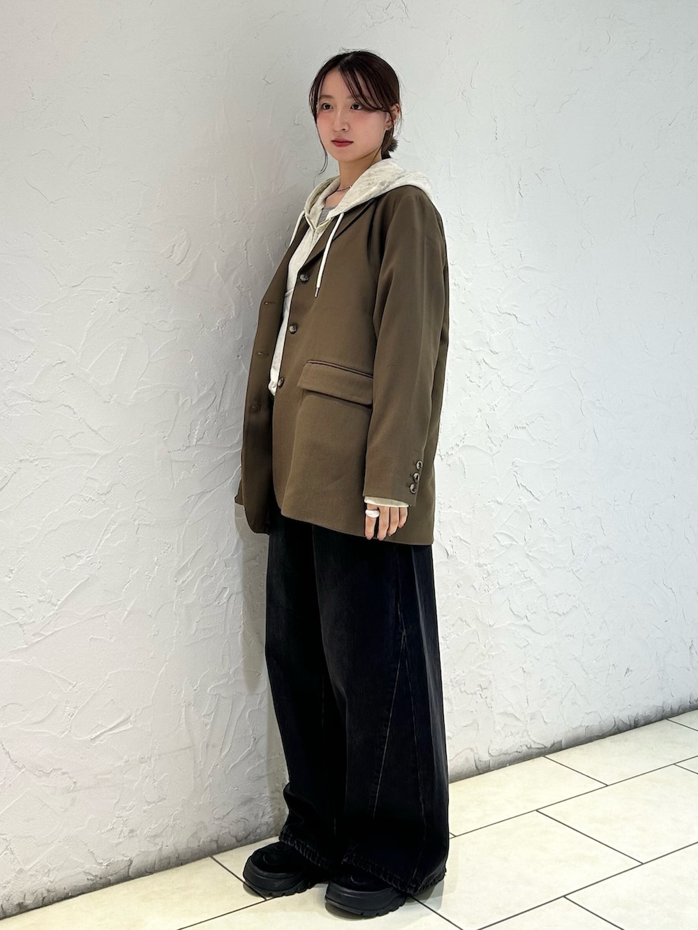 ゆったりサイズで落ち感があるので、中にパーカーをいれても着膨れしません✨