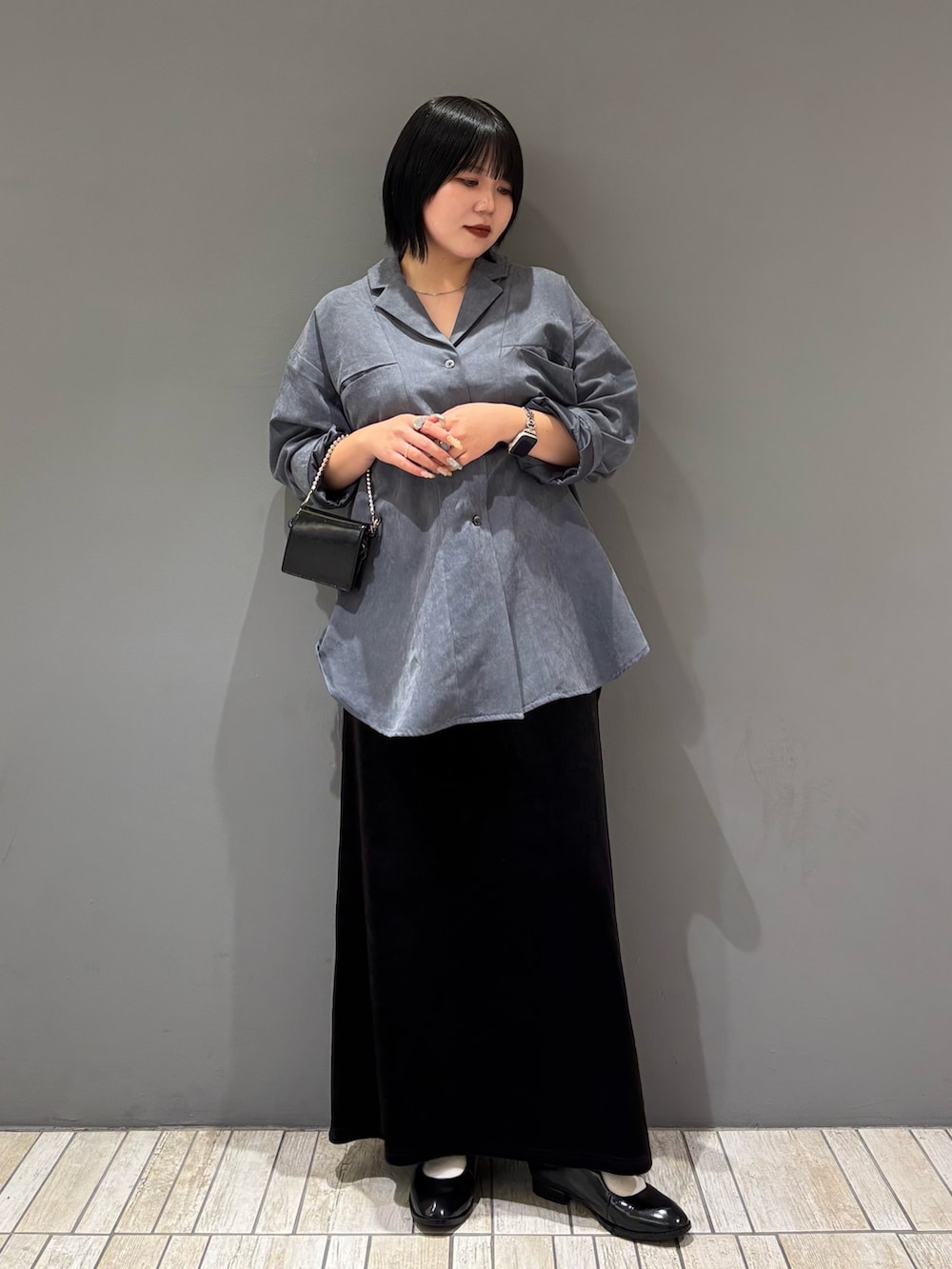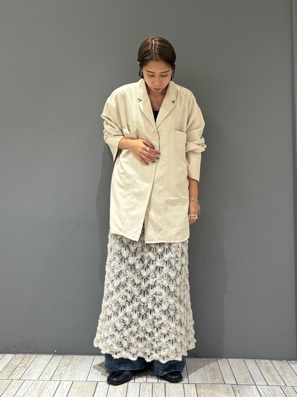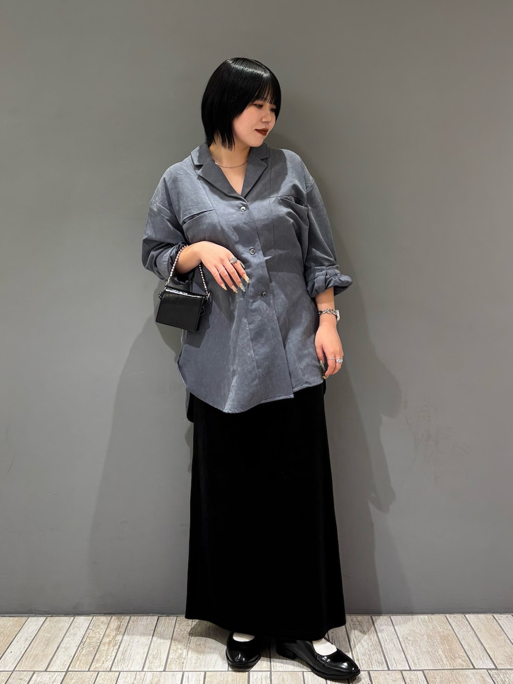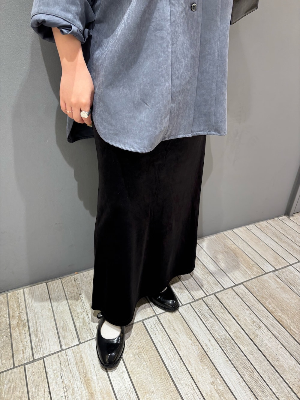 ・オーバーサイズ×細身のスカート合わせで全身のバランスを取る.ᐟ.ᐟ.ᐟ