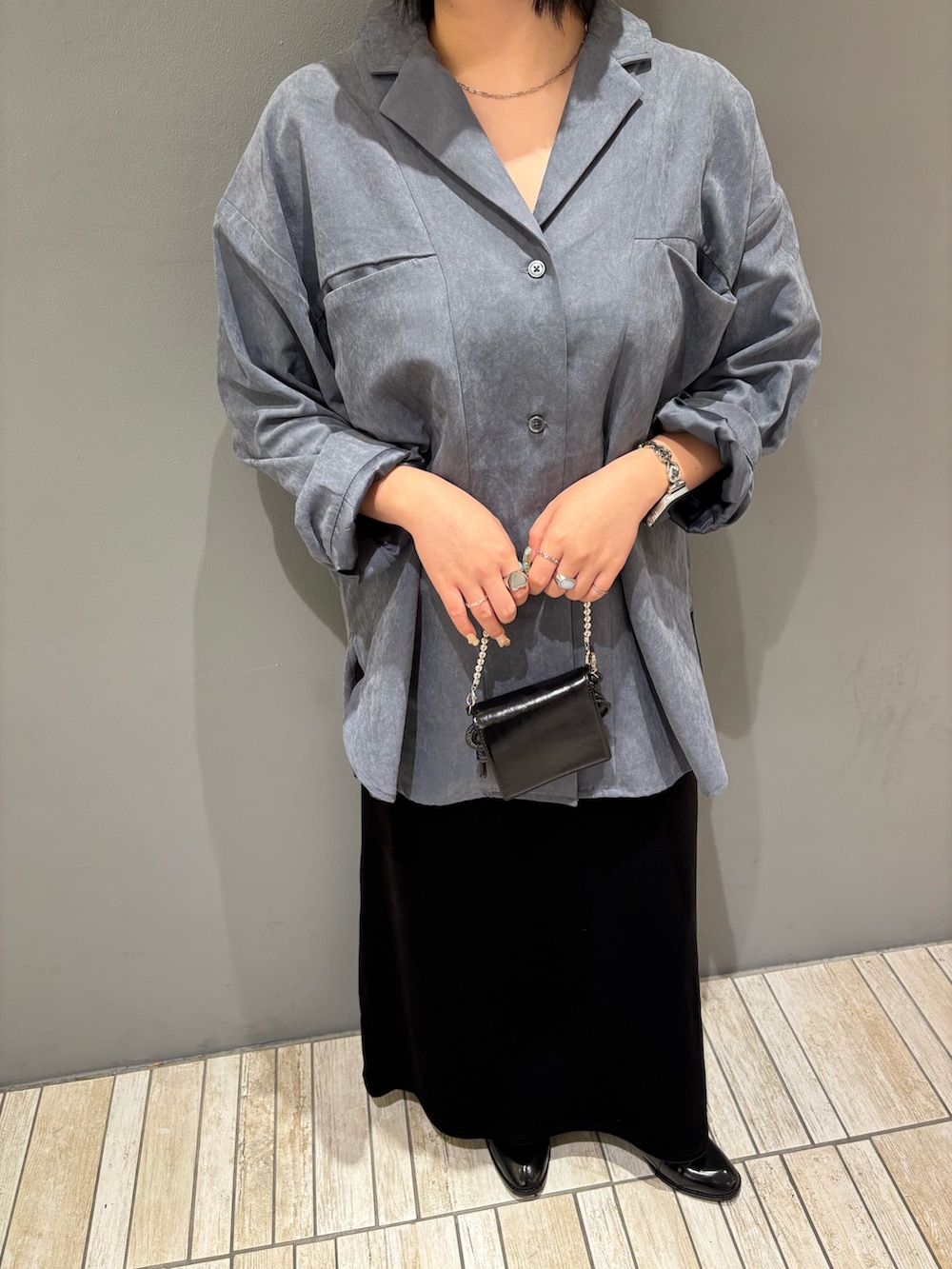 今回は、くすみブルーをメインにモードコーデを組んでみました!