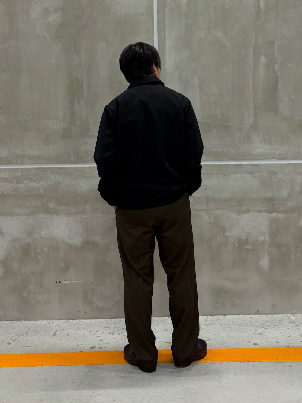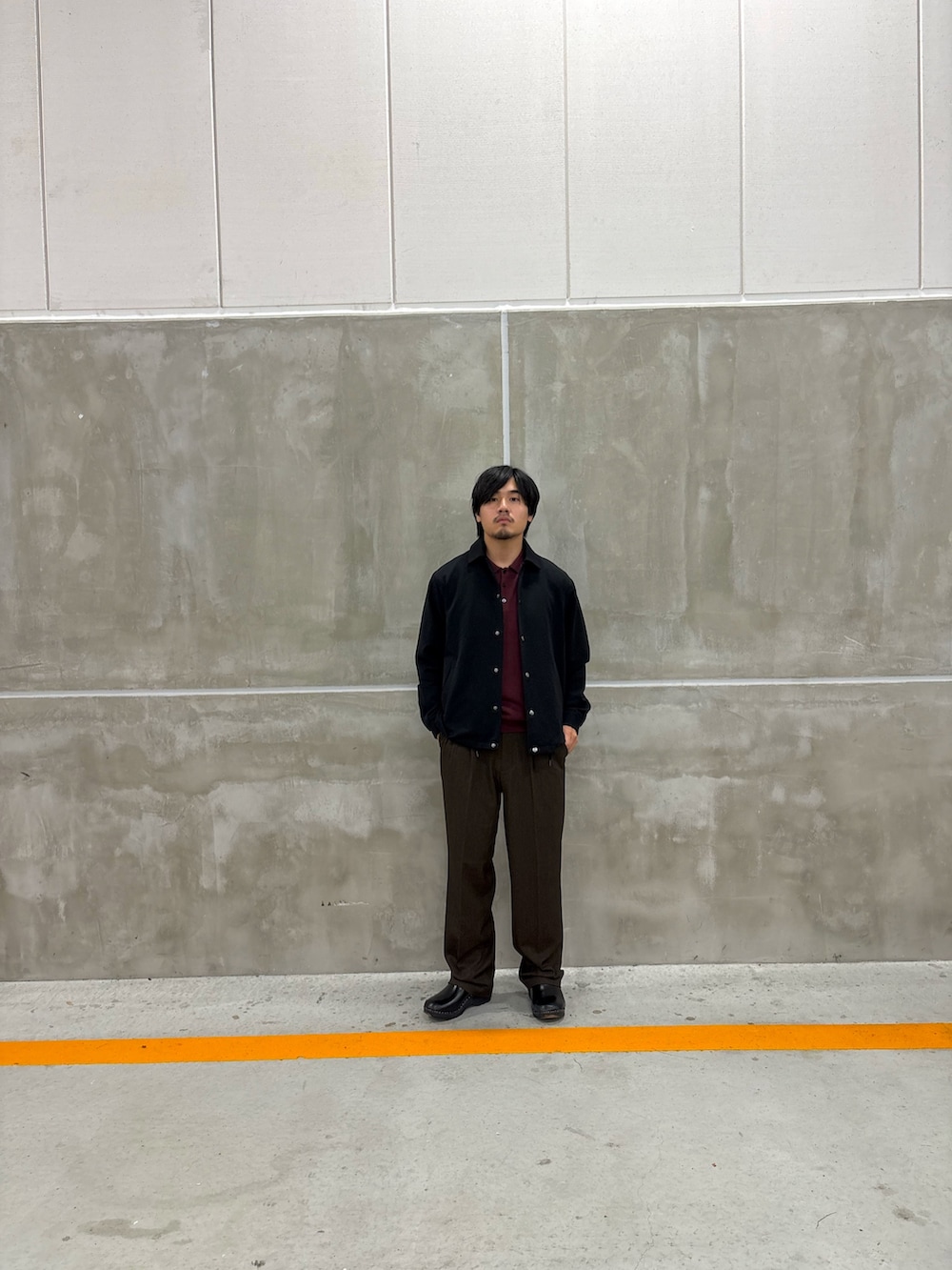 カシミヤコットンのポロセーターと楽に羽織れるTRコーチジャケットのコーデ
