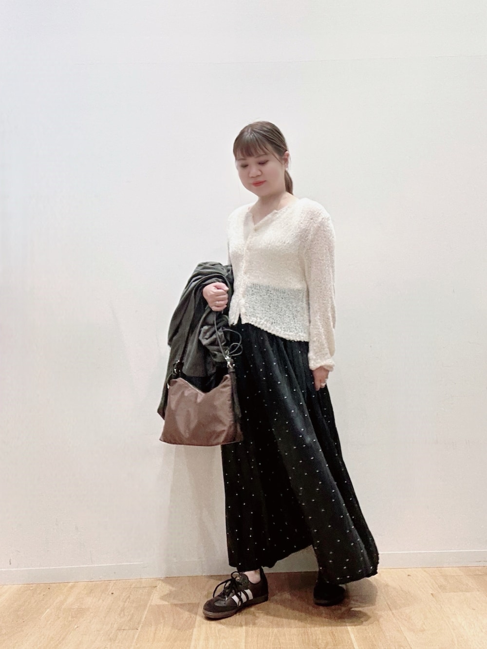 スカートはドットが散りばめられたデザインで落ち着きがあり色んなトップスと合わせやすいサイズ感とシルエットです🍓🍓